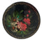 Eastern European Black Lacquer Floral Hand Painted Round Brooch
