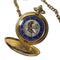 Vintage Pocket Watch on Chain Ted Blaylock for Franklin Mint. Chilkat Bald Eagle is at the center of four bands which are lined with gold dots. Franklin mint logo on back. Push button on top opens the lid. Connected to a 14.5" chain link strap. Secures with a hook closure. Embossed brown watch case has a snap closure, clasp hole and a belt clip.
