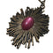 1970s Sunburst Pendant Pink Cabachon Center Stone Large Linked Chain Necklace