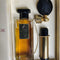 1960s Arpege Lanvin 2oz Eau De Lanvin Atomizer Miniature Pump Box Set Unused Dead Stock. Burgundy split open front. Short narrow gold atomizer with black ball pump. Fabric cord wick. Unused with light evaporation.
