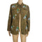 Olive Embroidered Floral Belted Zip Up Utility Standing Collar Jacket Size Medium