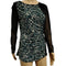 Sheer Long Sleeve Abstract Print Bodycon Top Black Green Anne Klein Size 8