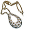 1960s Vintage Crown Trifari Gold White Enamel Woven Pendant Statement Necklace