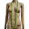 1960s 5 Strand Opera Length Green Plastic Beaded Necklace. Three shades of green. 54" Flapper length necklace. Tubular beads on thread. Gold filagree end caps secure op with a fold over closure. Retro style.