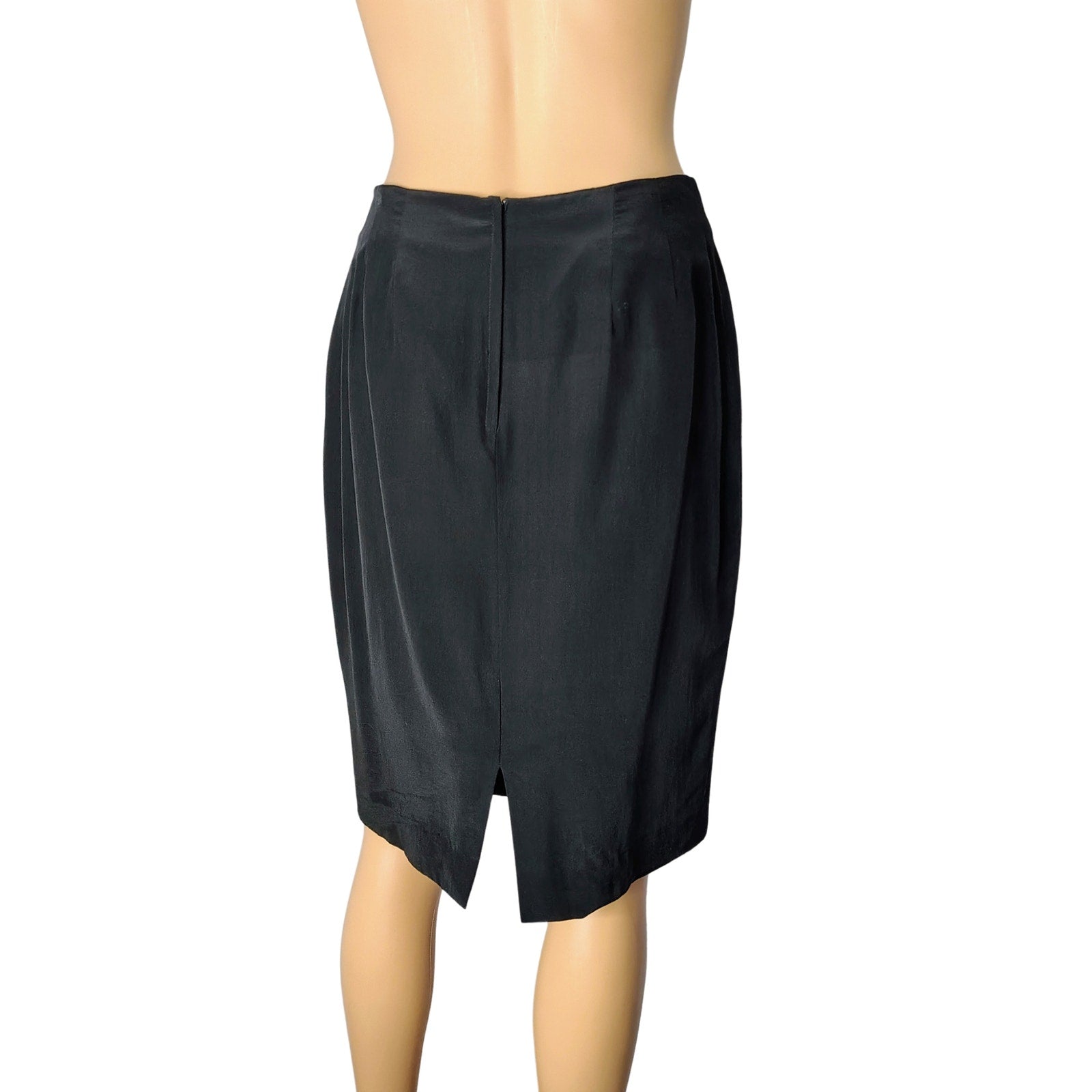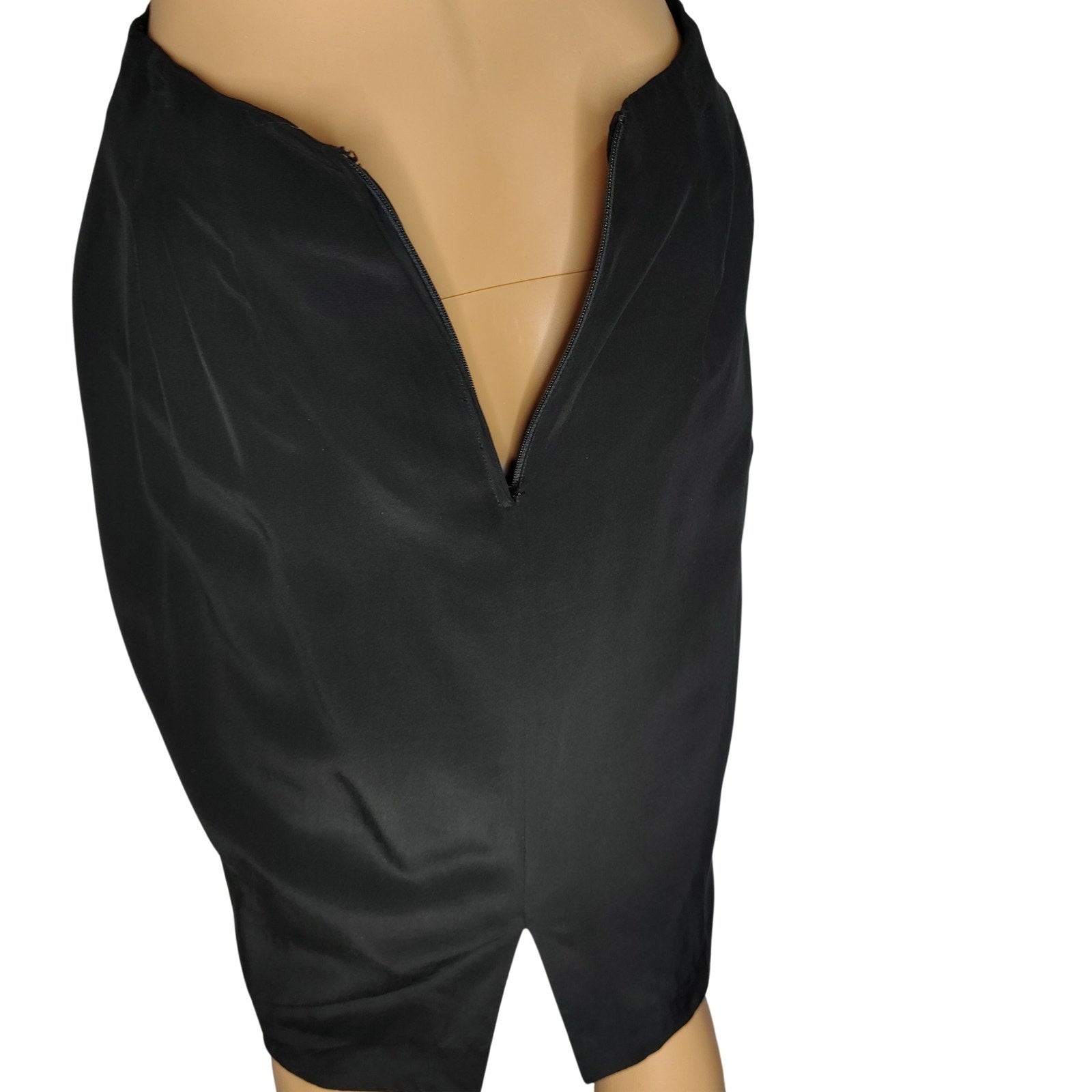 100% Silk 1990s Lined Black Pencil Skirt Back Zipper Back Slit Size 8 Like New
