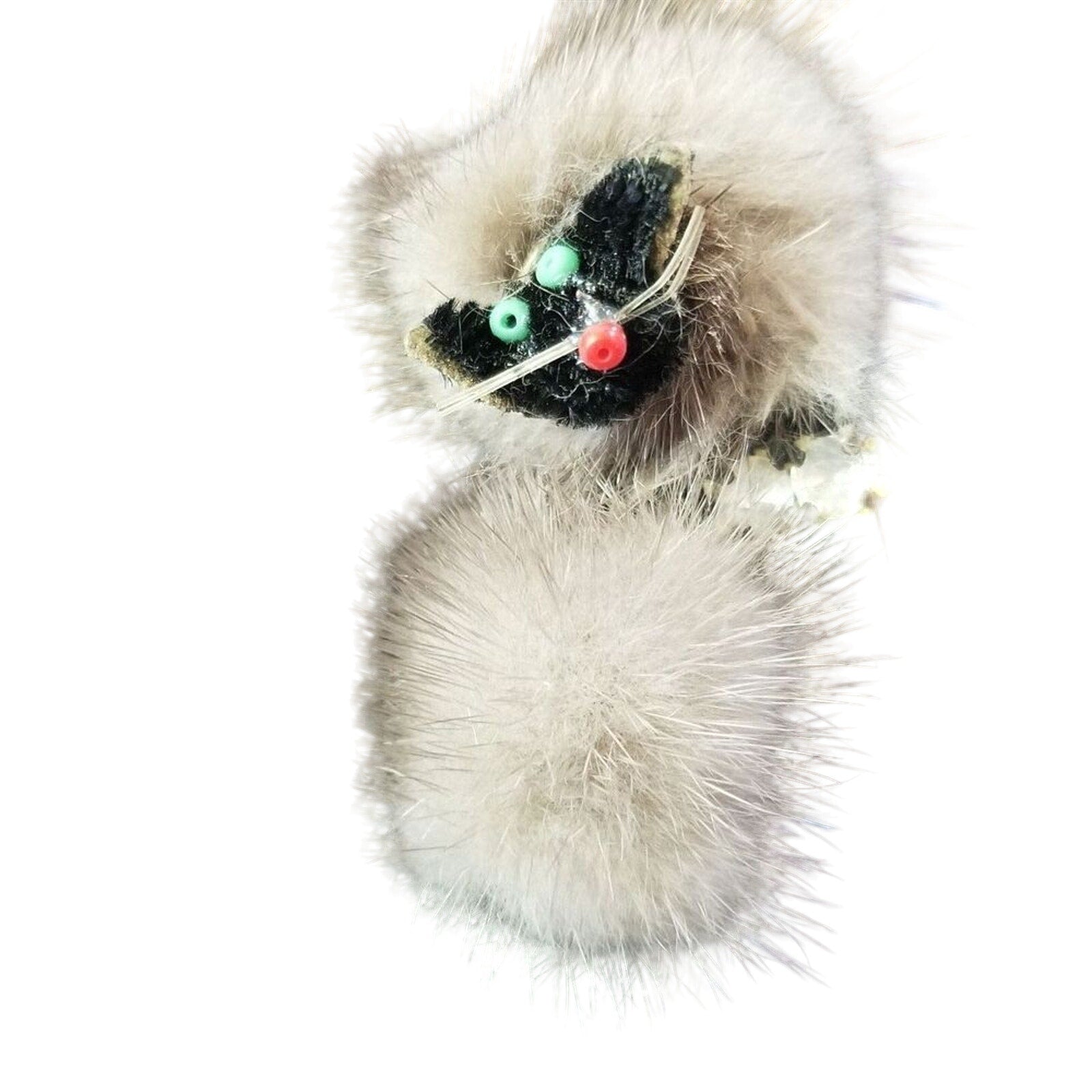 1950s Poodle MCM Authentic Real Mink Brooch Pin Beaded Face Estate Jewelry