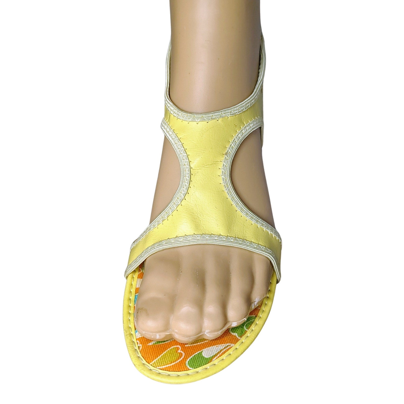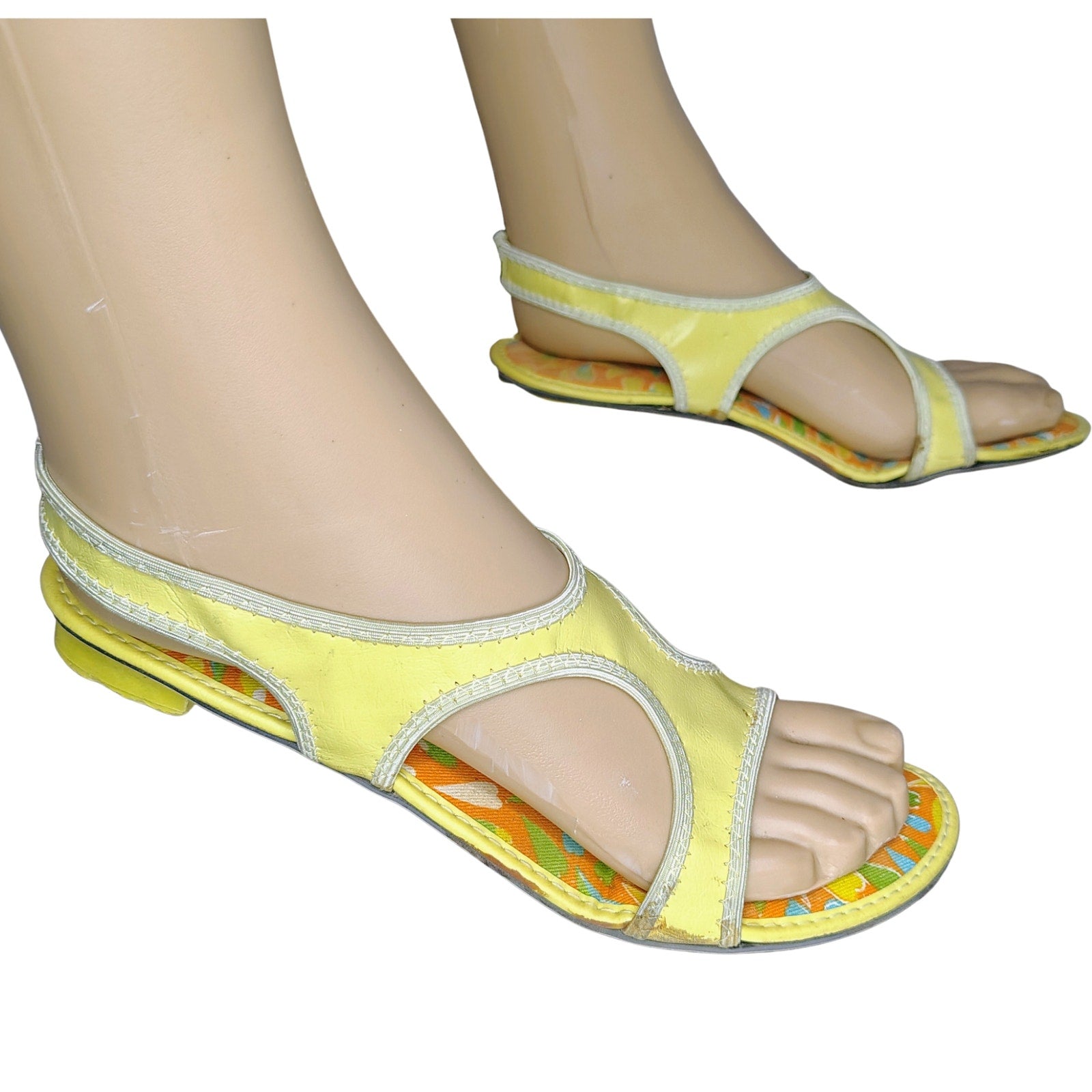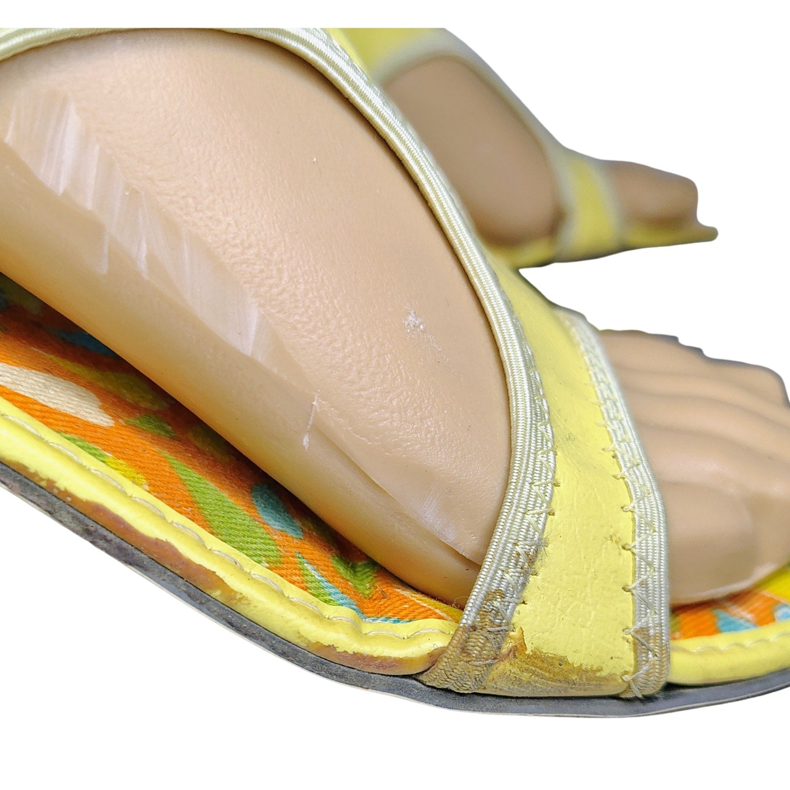 1960 - 1970s Yellow Flower Power Bohemian Era Sandals Low Heel Cut Out Design Size 6.5 [Vintage]