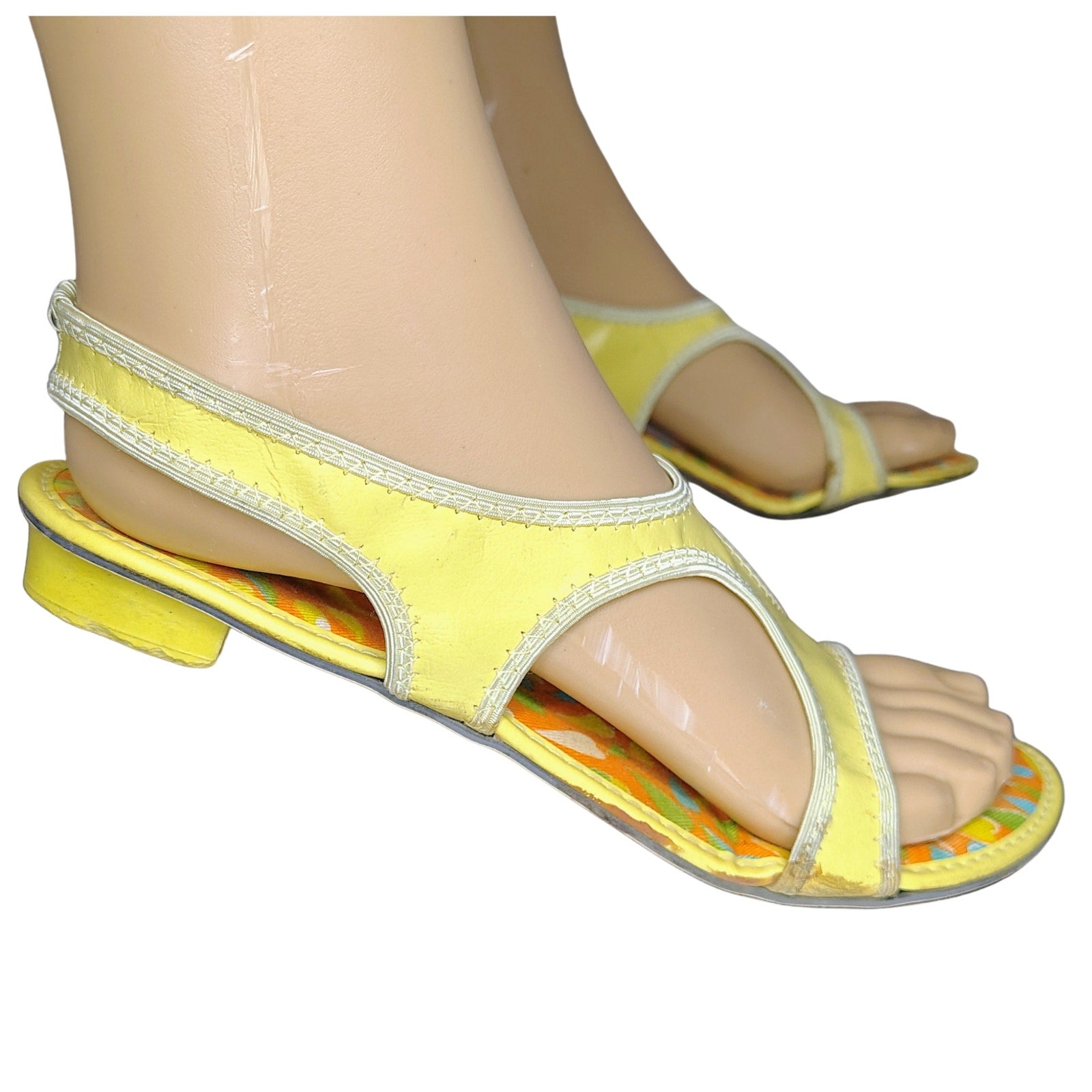 1960s - 70s Yellow "Flower Power" Bohemian Era Sandals Low Heel Cut Out Design Size 6.5
