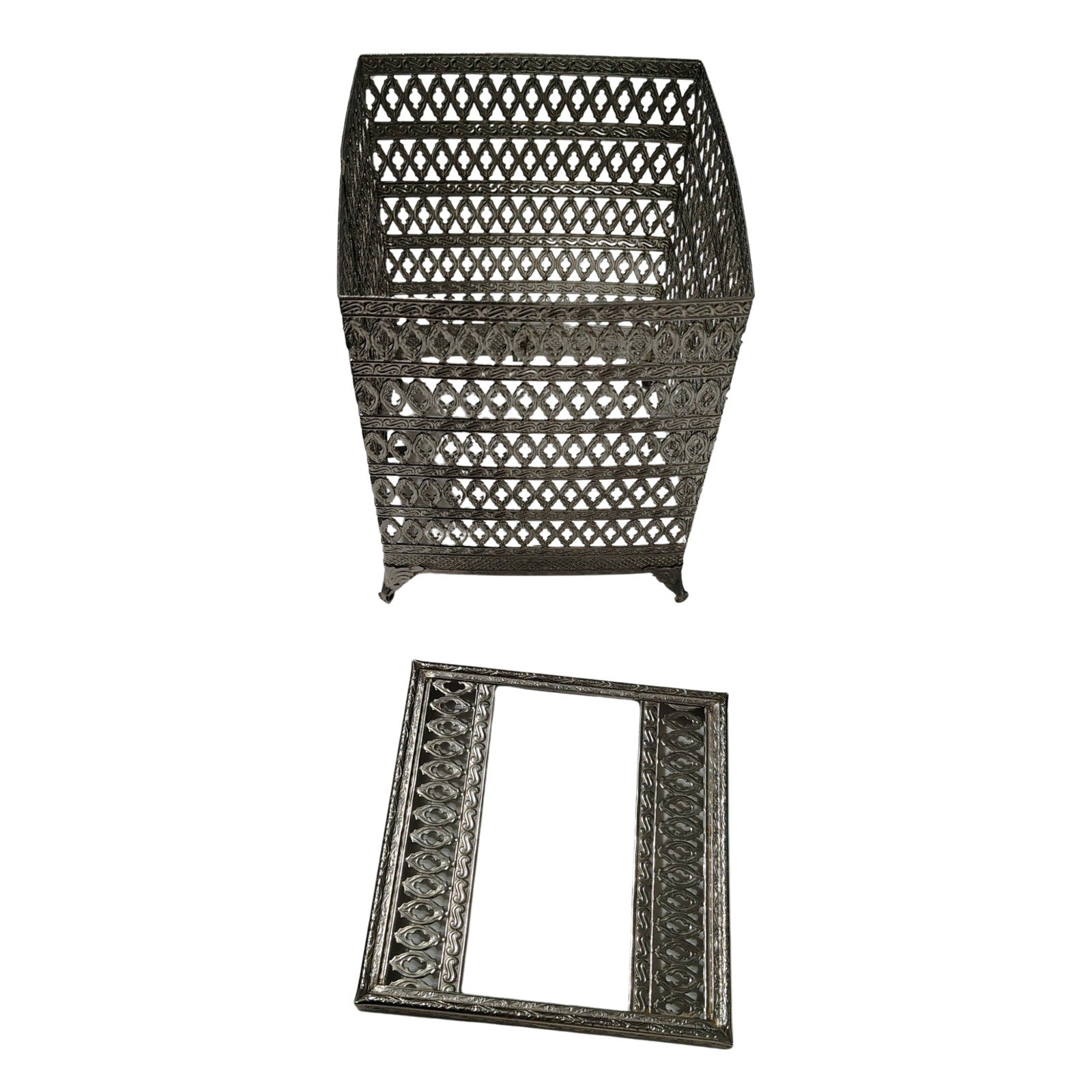 1960s 2pc Ornate Filigree Design Silver-toned Tissue Box Holder Cover Mid-20th Century Hollywood Regency Era
