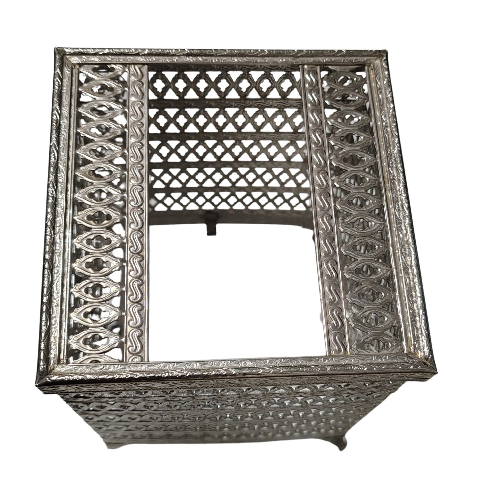 1960s Ornate Filigree Design Silver Tone Tissue Box Holder Hollywood Regency Era [Vintage}