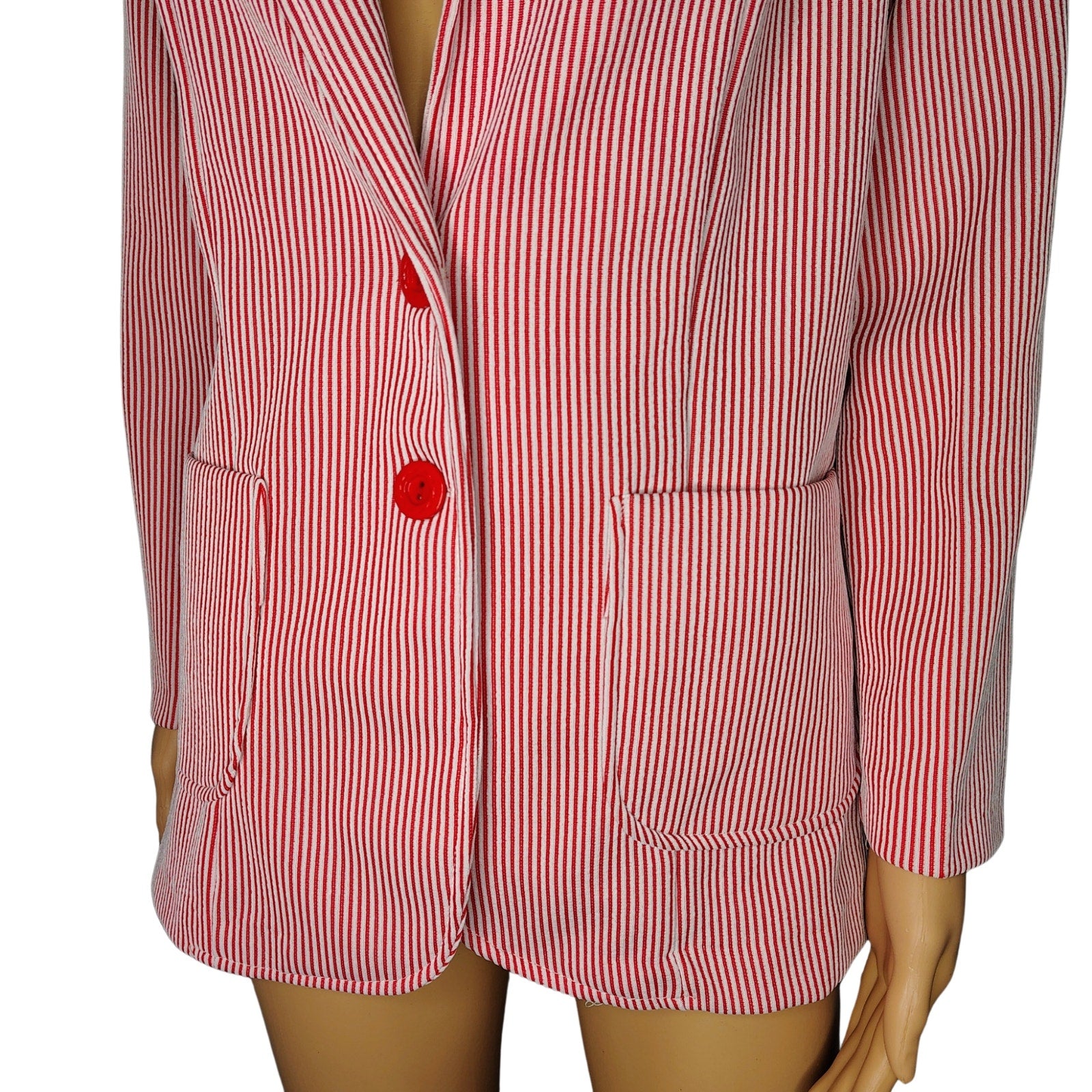 1960s Red White Striped Polyester Single Breasted blazer Size 12 Women's Vintage