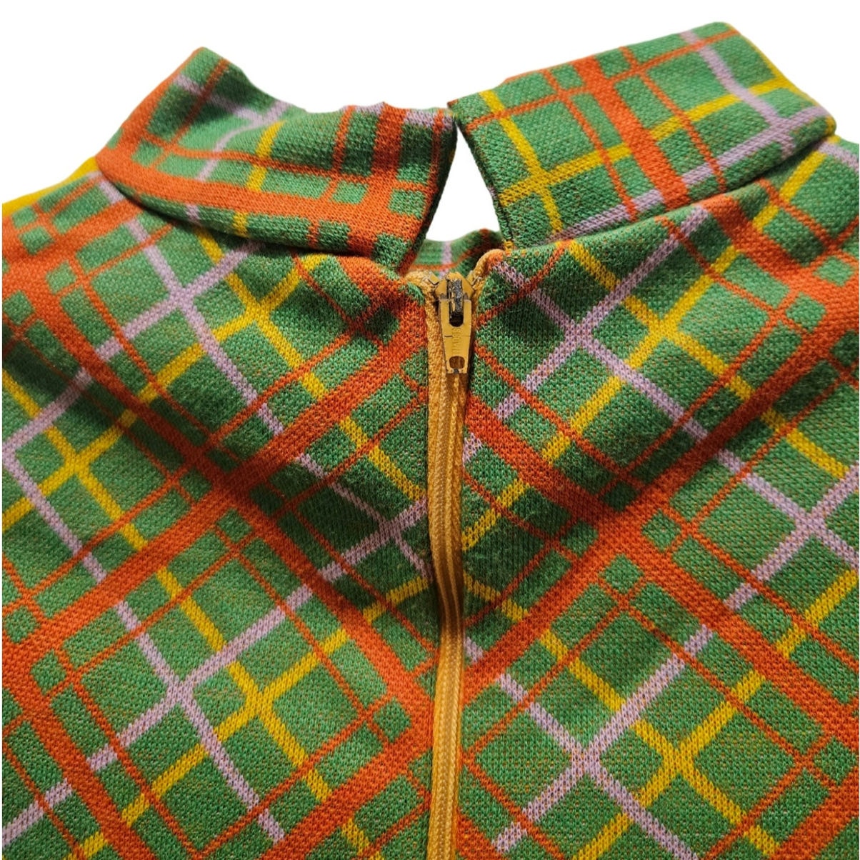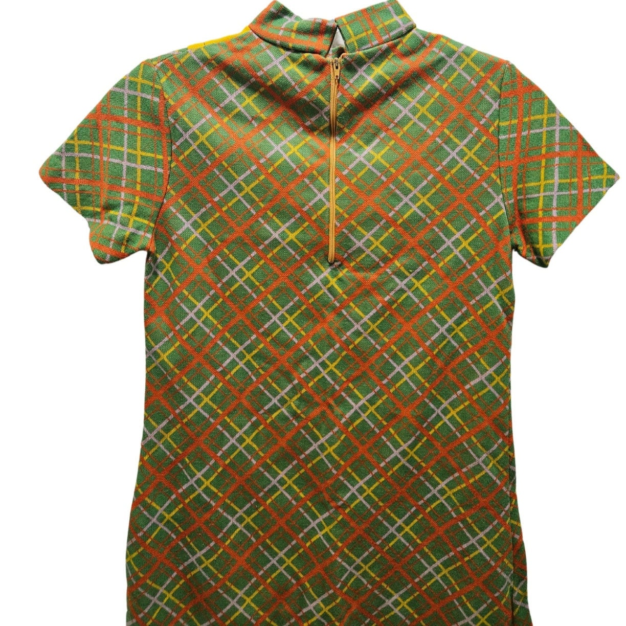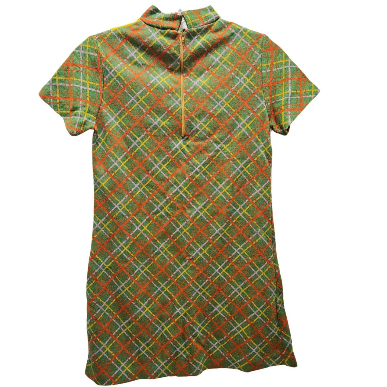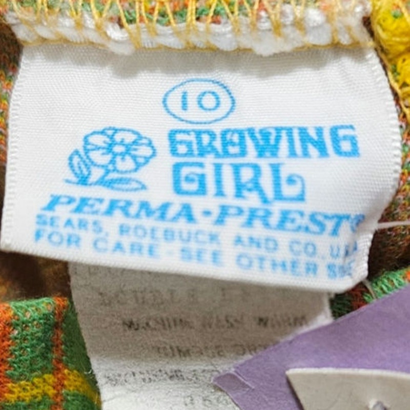 1960s Vintage Green Orange Yellow Children's Growing Girl A-Line Perma-Prest Dress Back Zipper Size 10 Girls