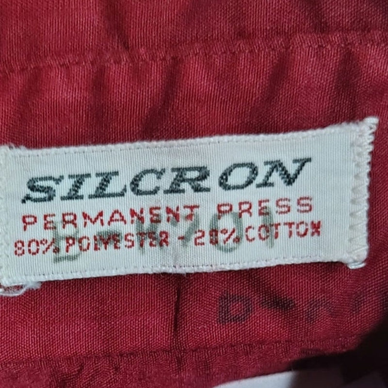 1970s Burgundy Wine Button Up Long Sleeve Folded Wrist Cuffs Permanent Press Dress Shirt Size 15 - 33