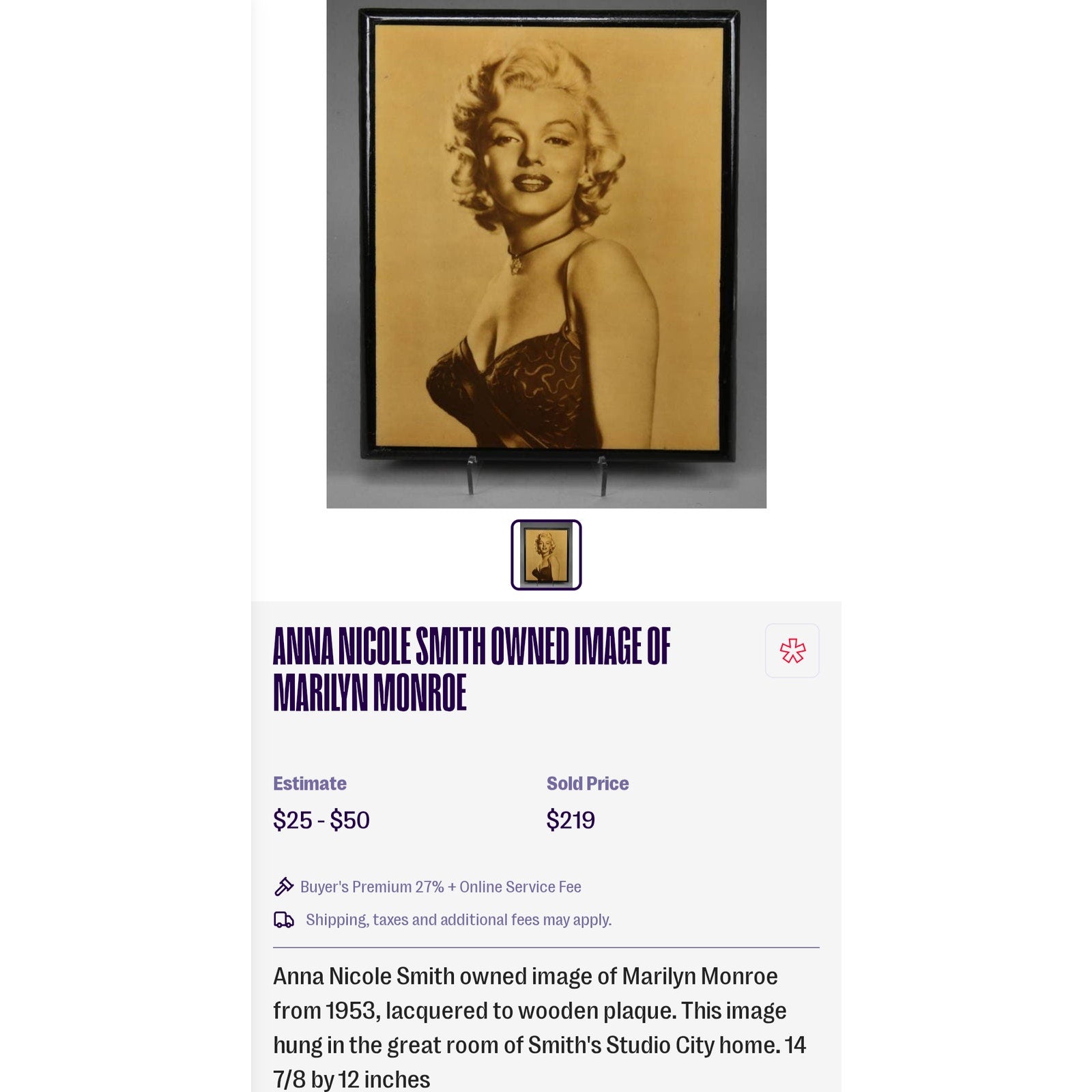 [I've included a blurb about a similar piece once owned by Anna Nicole Smith, which was auctioned and sold for $219.00]