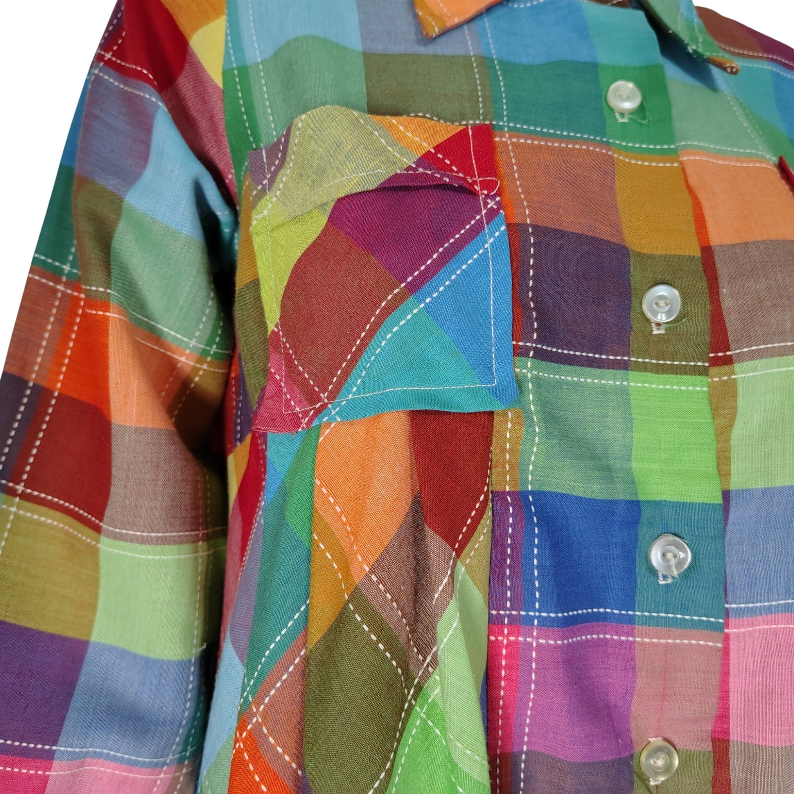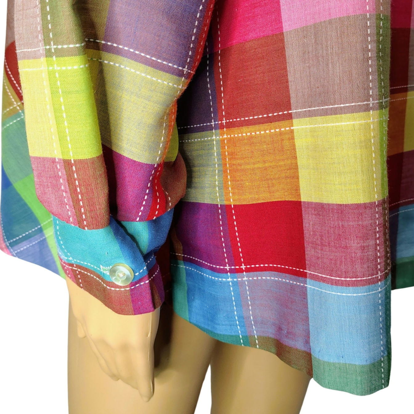 1970s Sears Rainbow Pleated Maternity Button Up Long Sleeve Shirt Size 7/8 [Vintage]