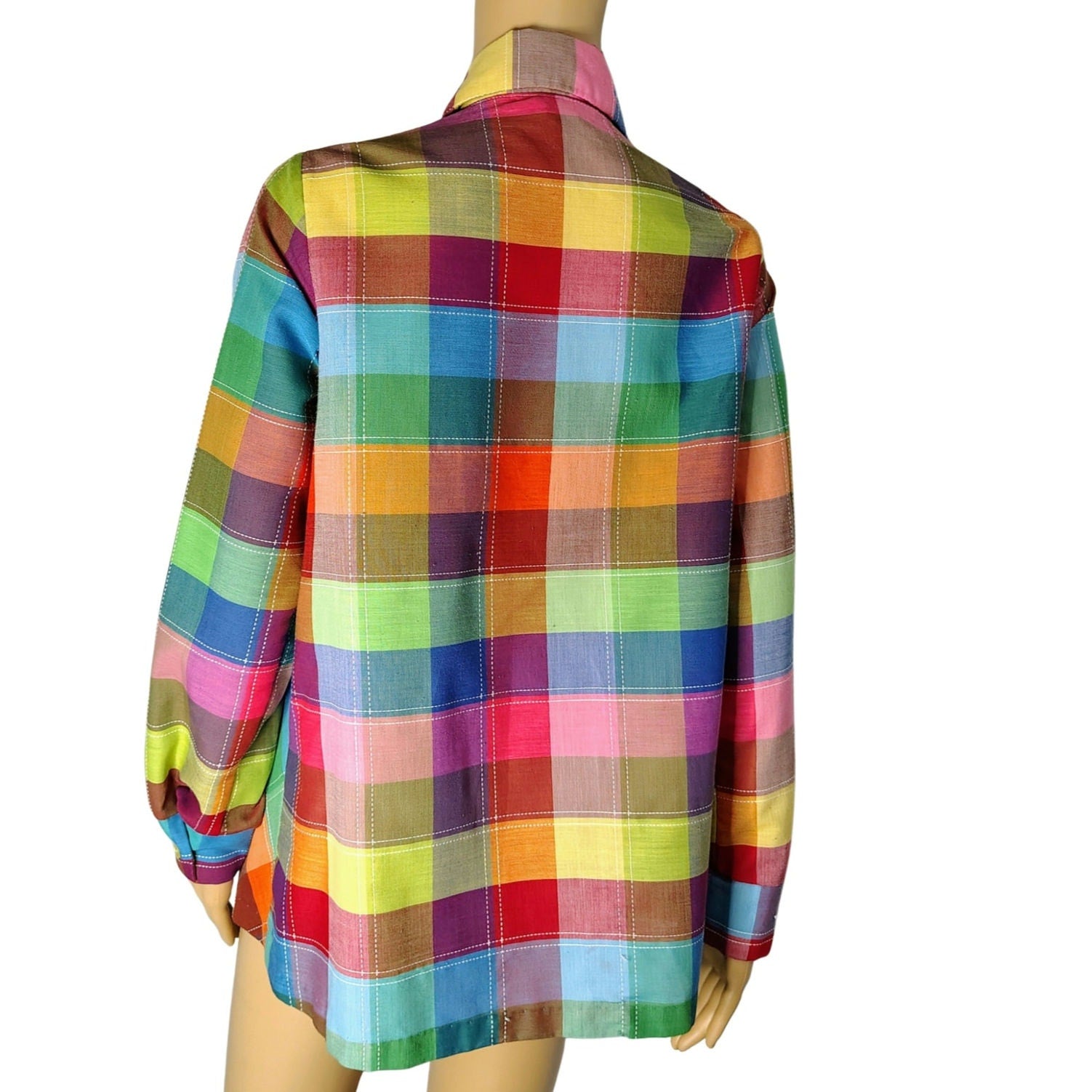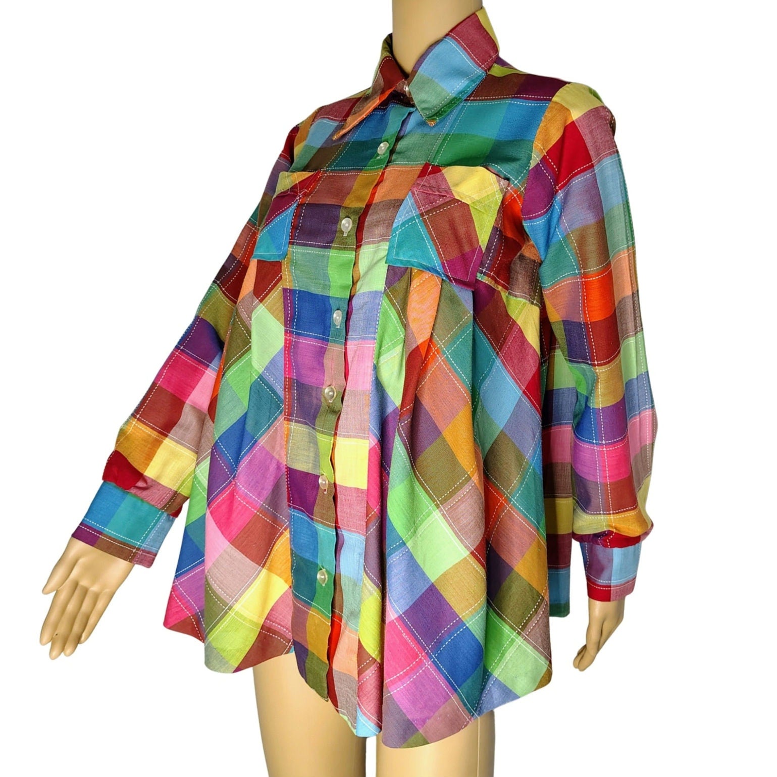 1970s Sears Rainbow Pleated Maternity Button Up Long Sleeve Shirt Size 7/8
