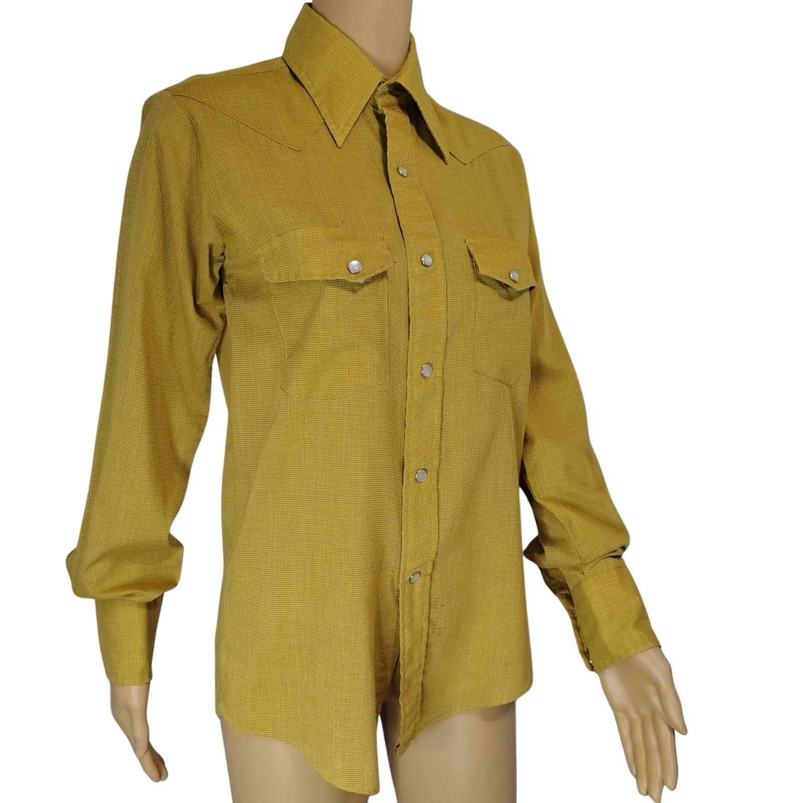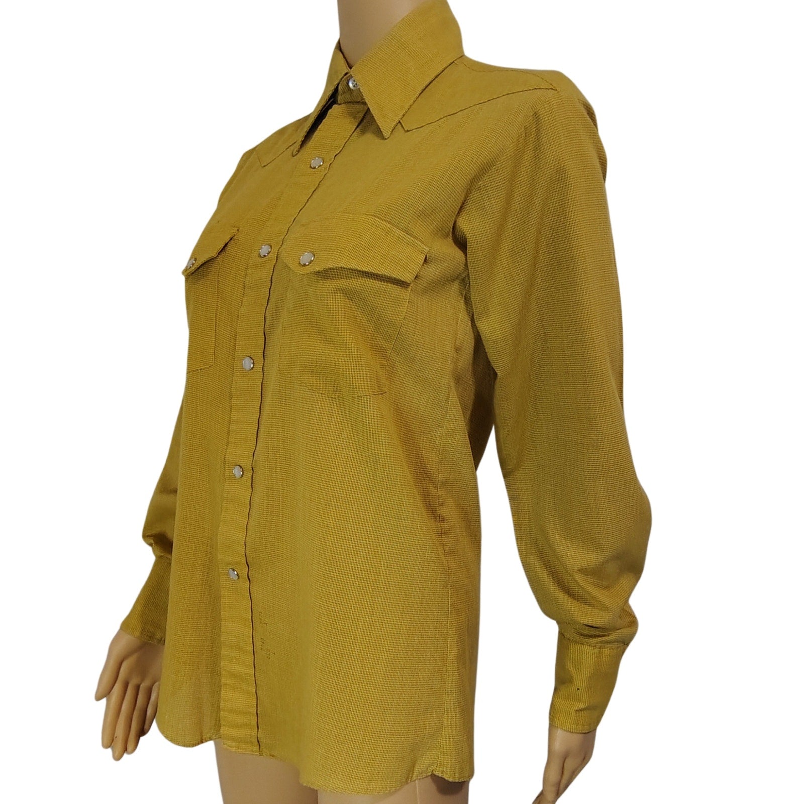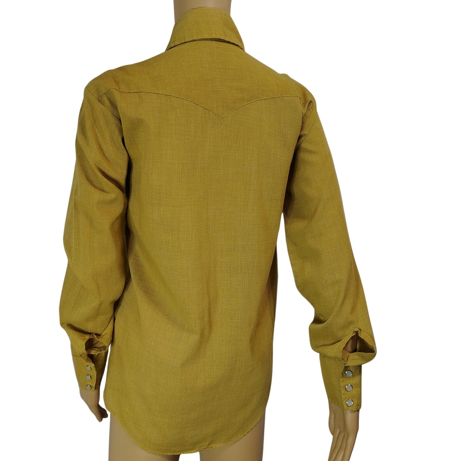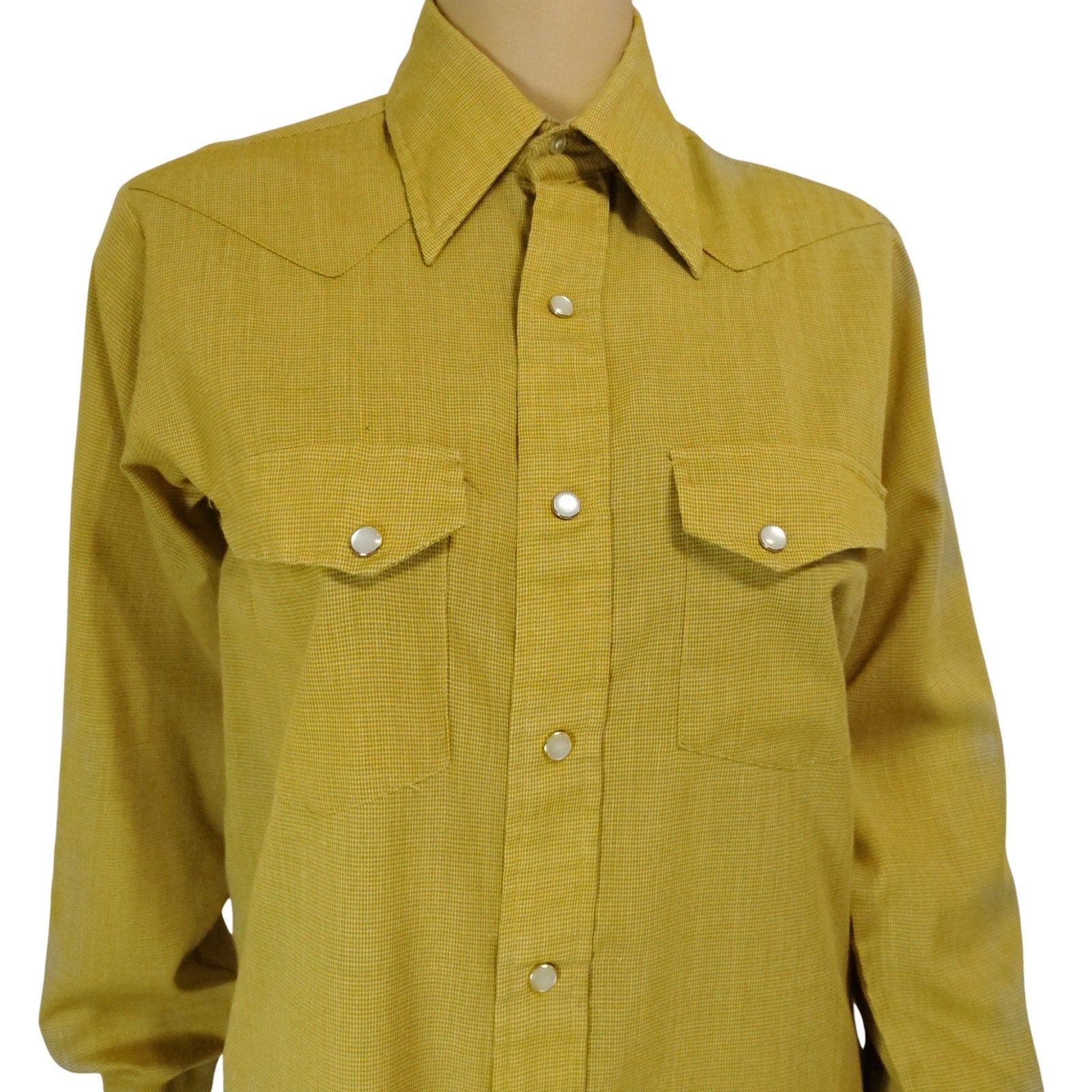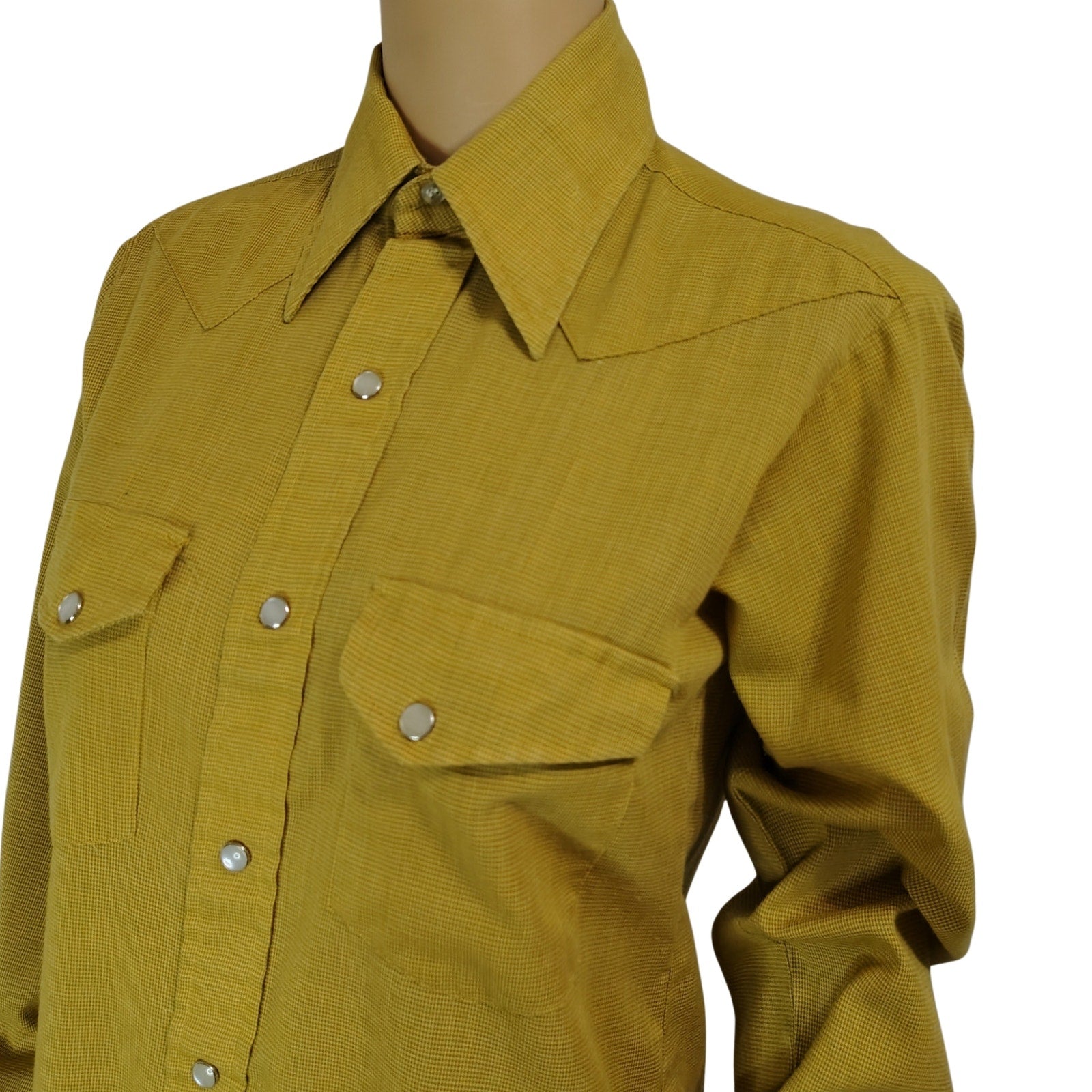 1970s Western Long Sleeve Collar Shirt Mustard Yellow Pearl Snap Size Small [Vintage]