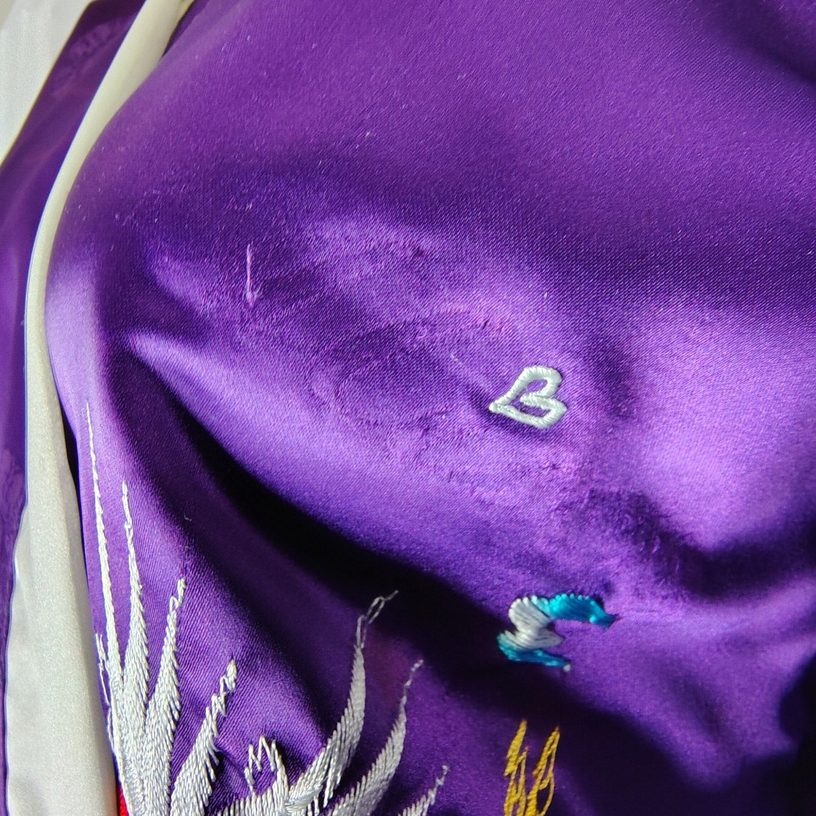 1980s Japanese Rich Royal Purple Kimono Embroidered Crane White Trim One Size [Vintage]