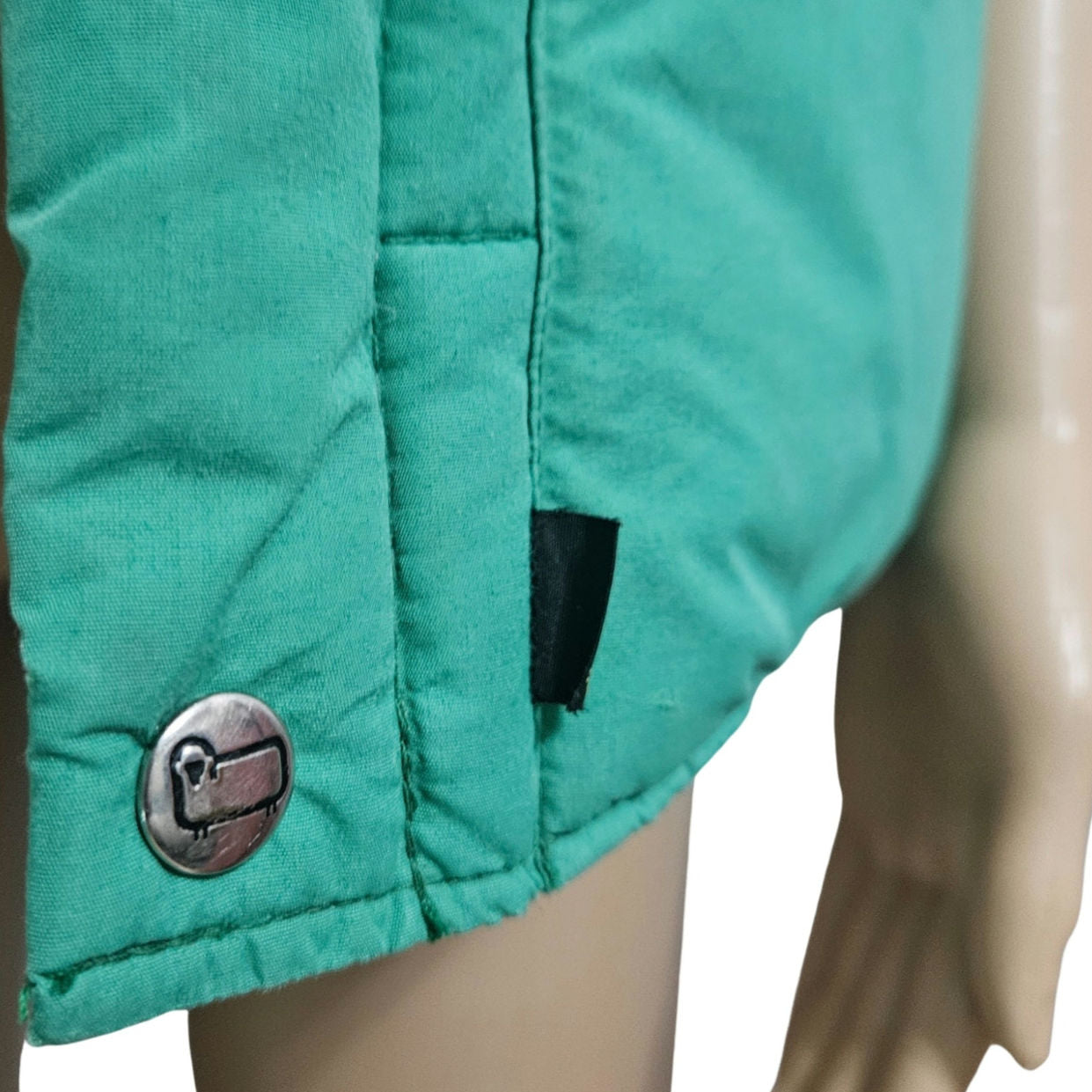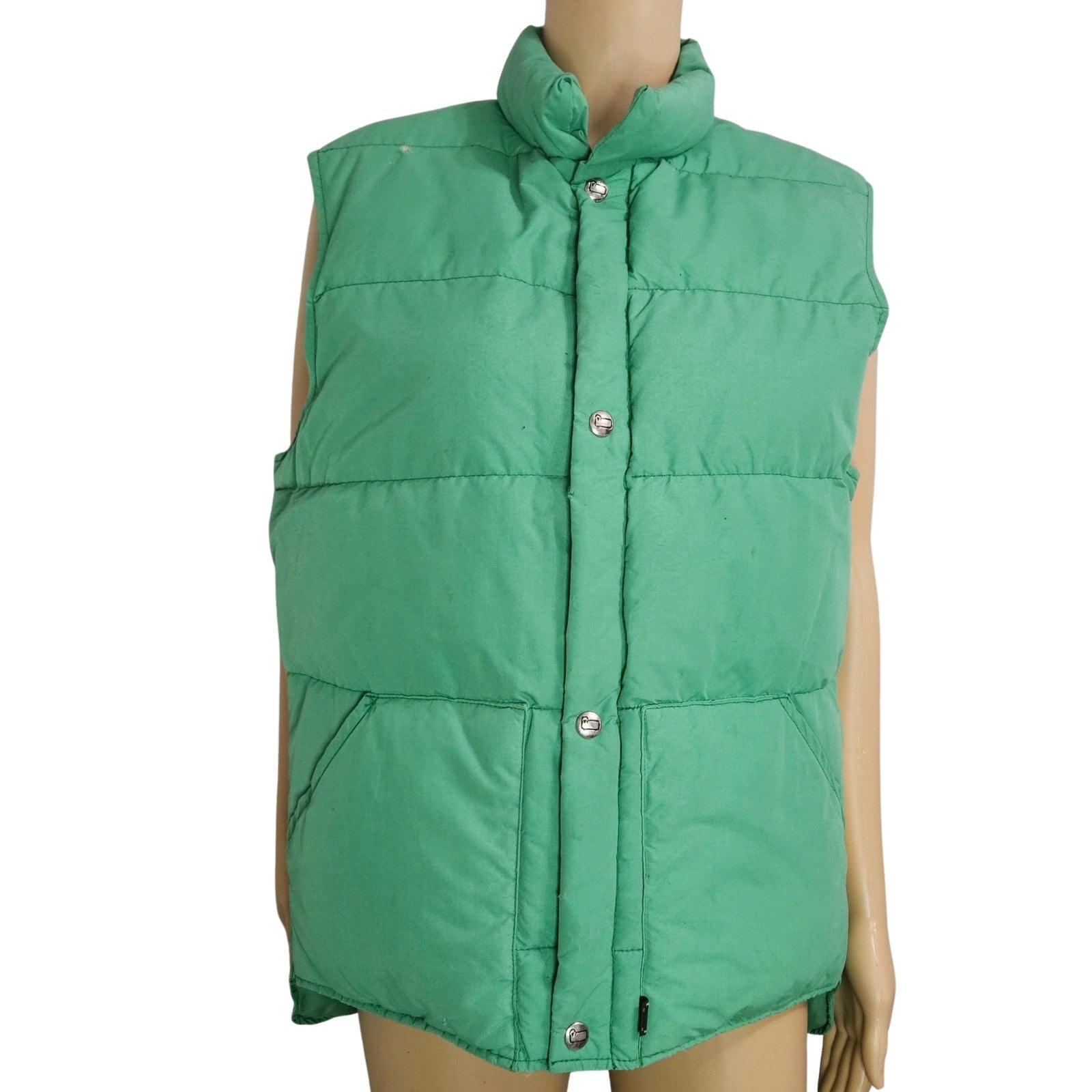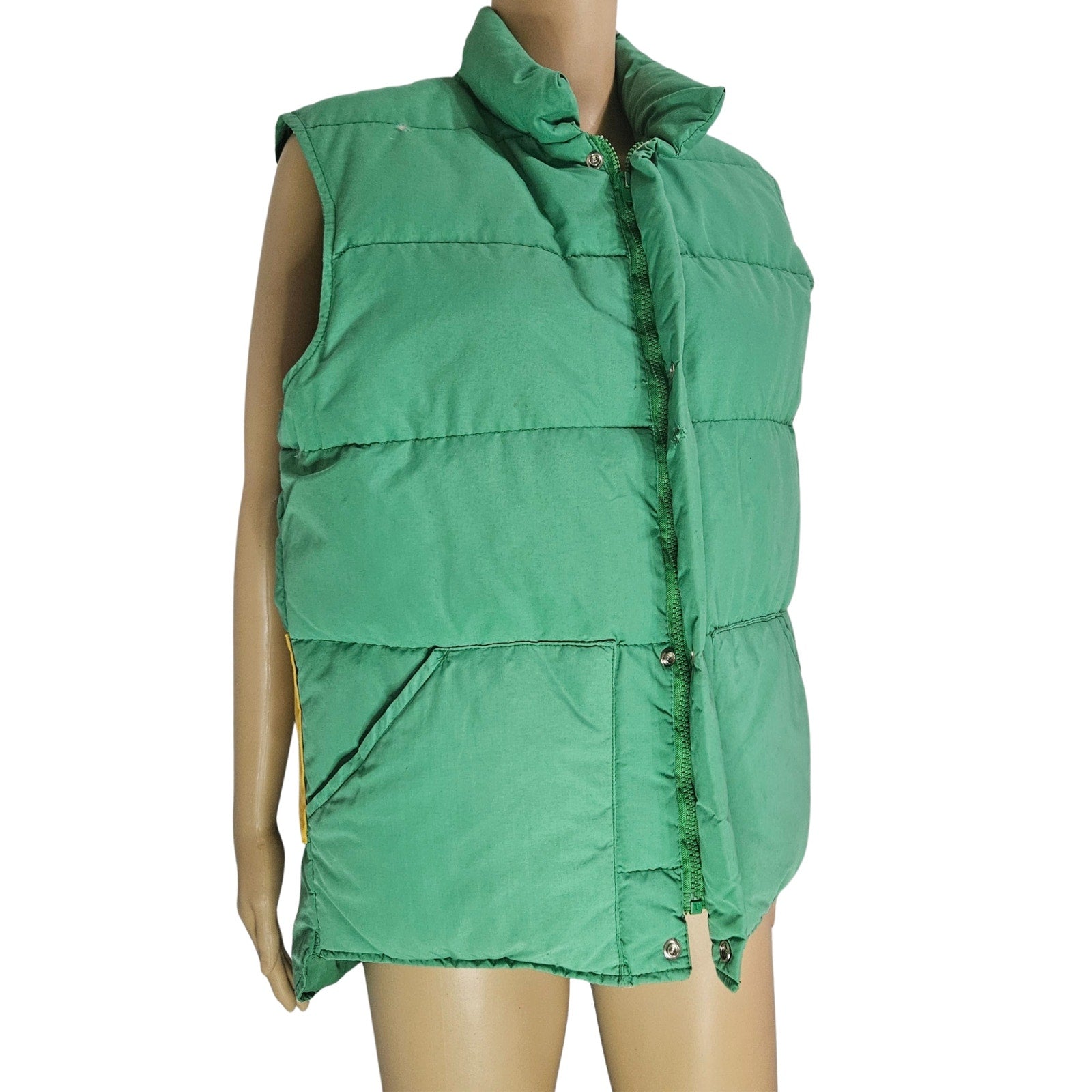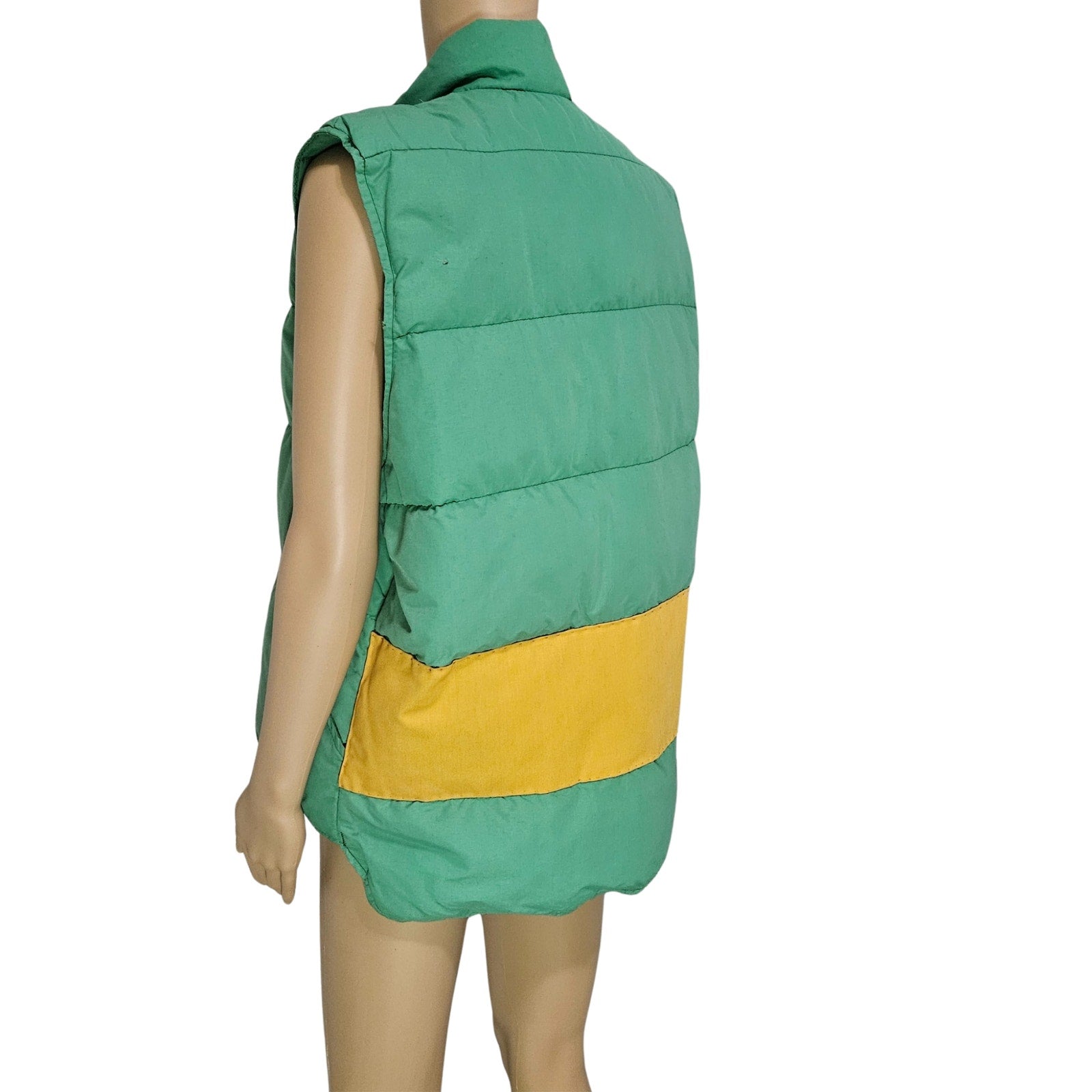 1980s Woolrich Insulated Kelly Green Yellow Goose Down Puffer Vest. Insulated collar Size Medium