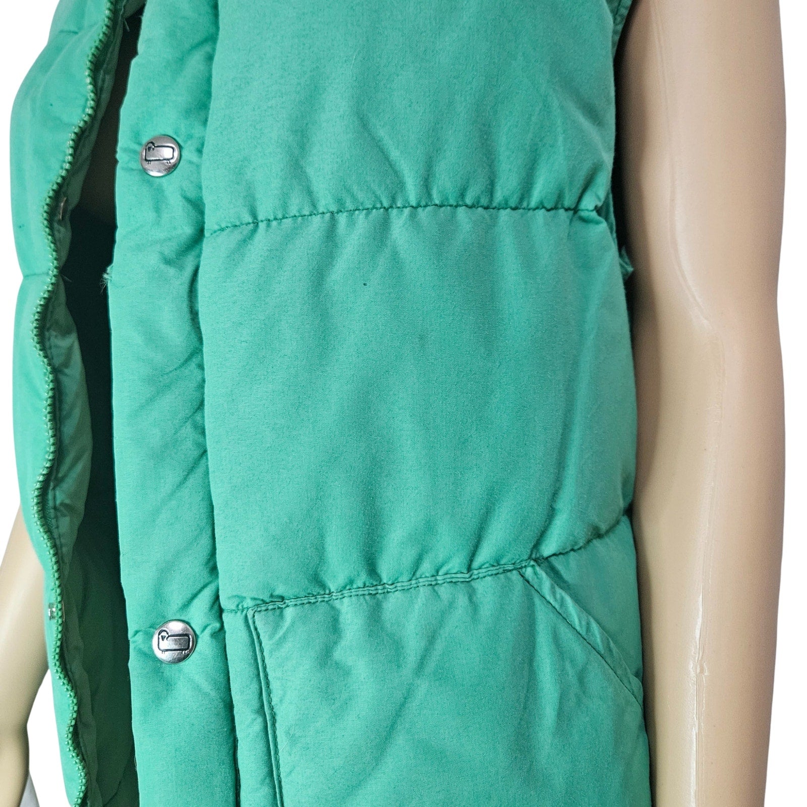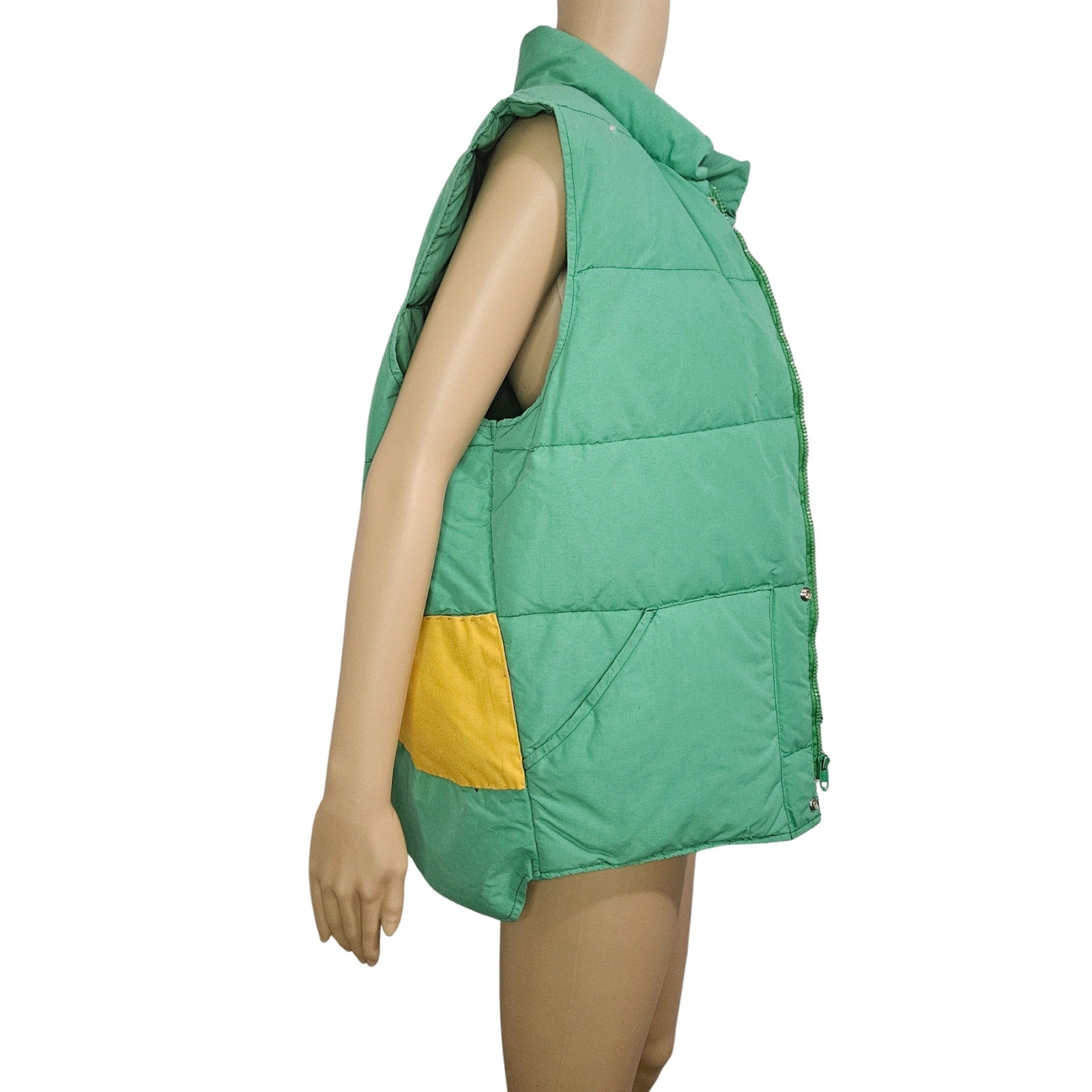 1980s Woolrich Insulated Kelly Green Yellow Goose Down Puffer Vest Size Medium [Vintage]