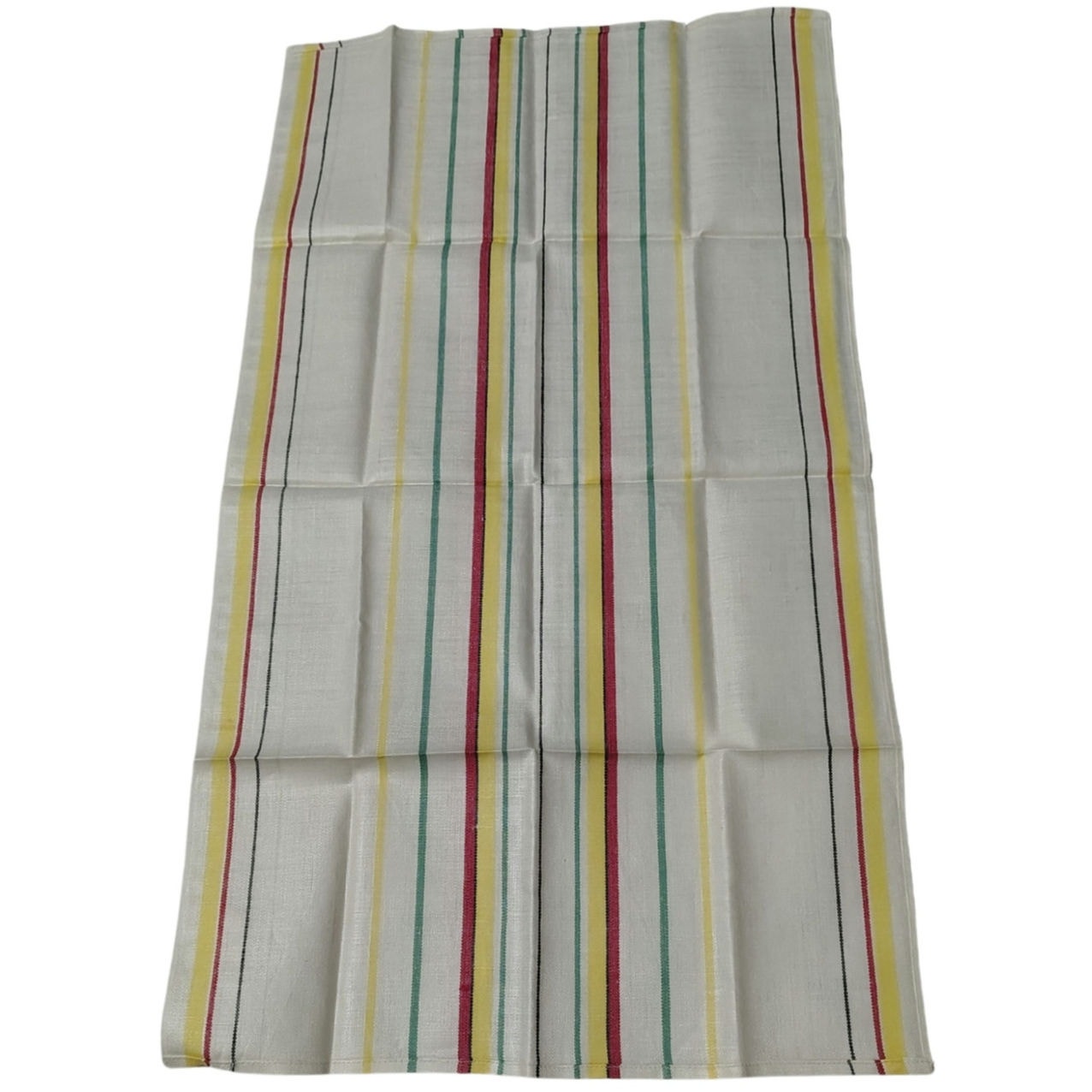 40s 50s Vintage Pure Linen Striped Tea Towel. Unused French Kitchen Towel. Black, red, yellow, green stripes.