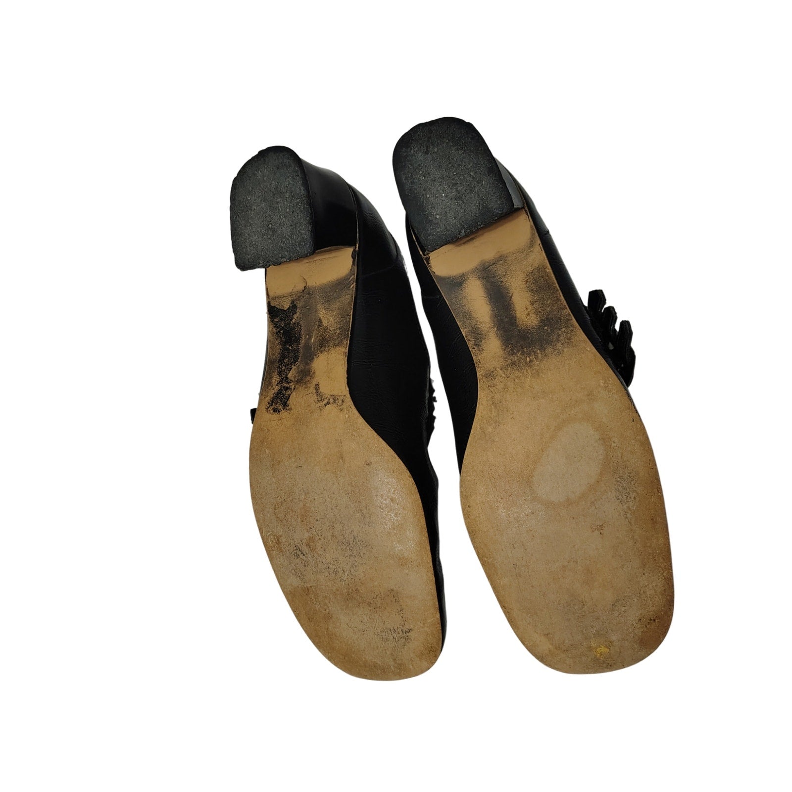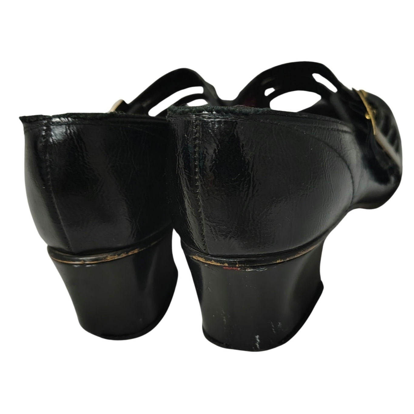 60s Mary Janes Black Leather Square Toe Block Heel Womens Shoes Vintage Footwear Size 7