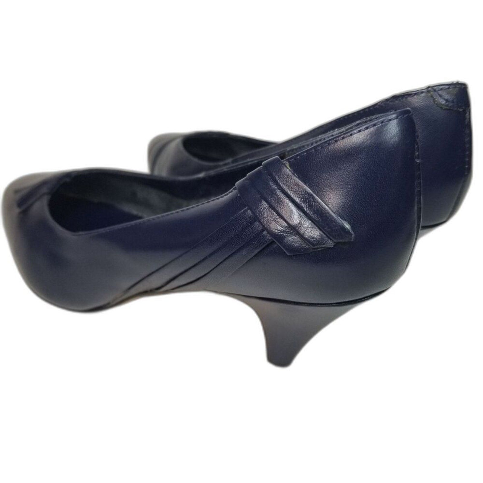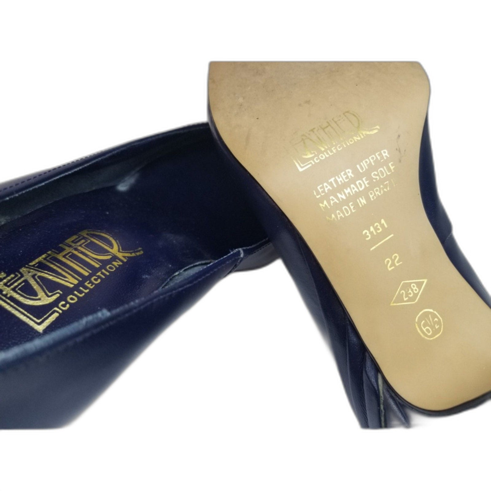 1980s Blue Leather Pump Heels Round Pointy Toe Size 6.5 Gently Used [Vintage]