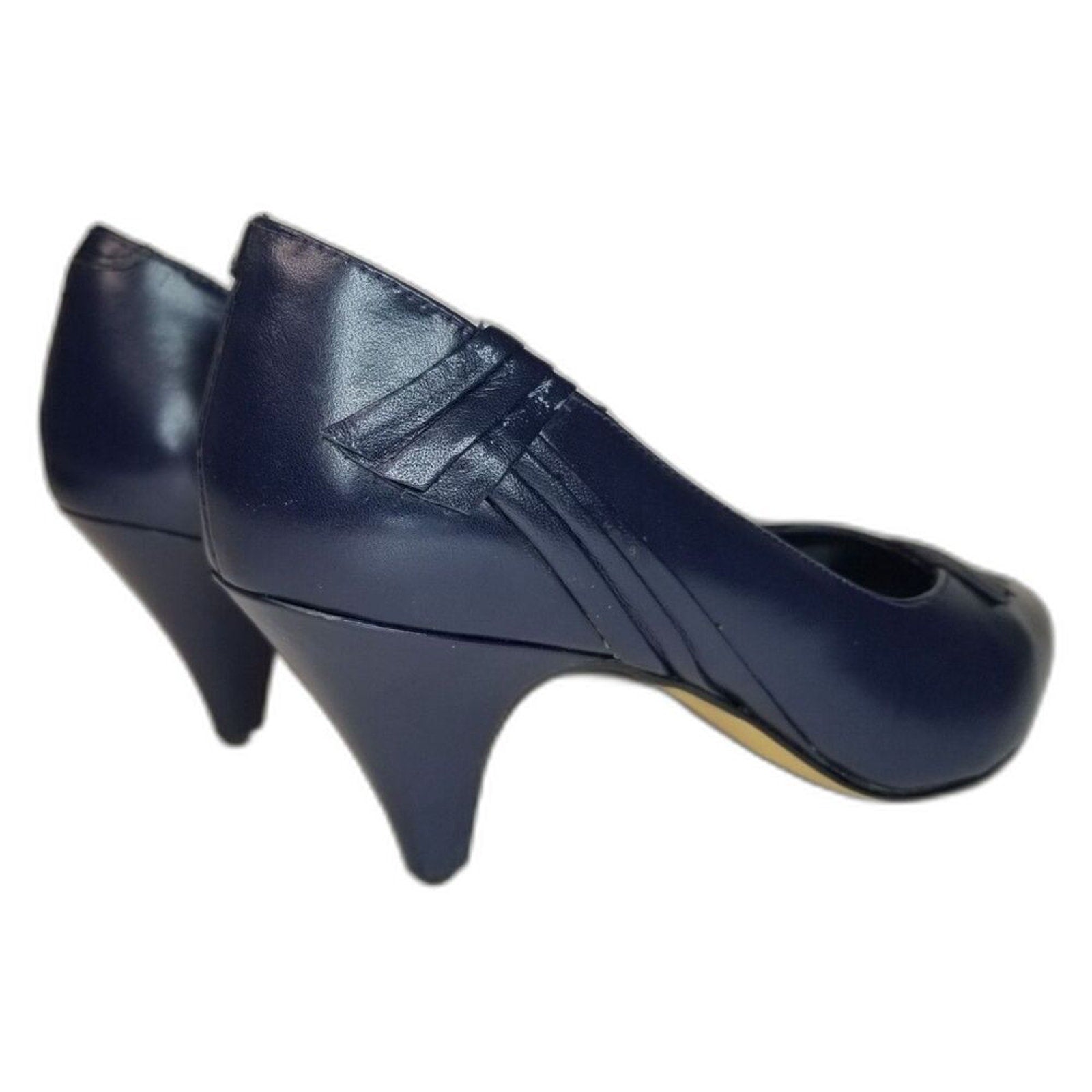 1980s Vintage The Leather Collection blue leather round pointy toe pump heels.
