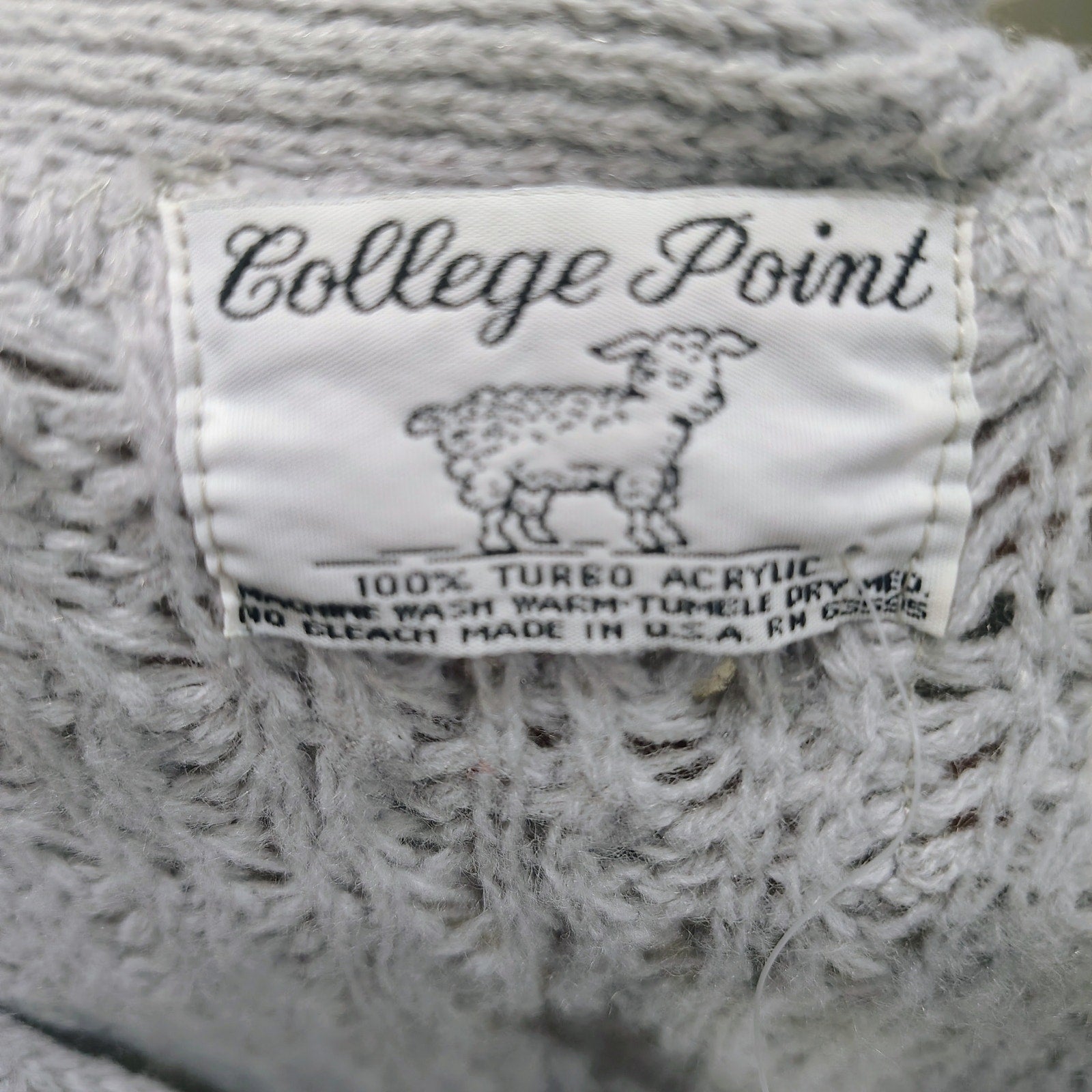 70s Gray Sweater Vest Acrylic Cardigan Button Up Boho Style College Point Size M