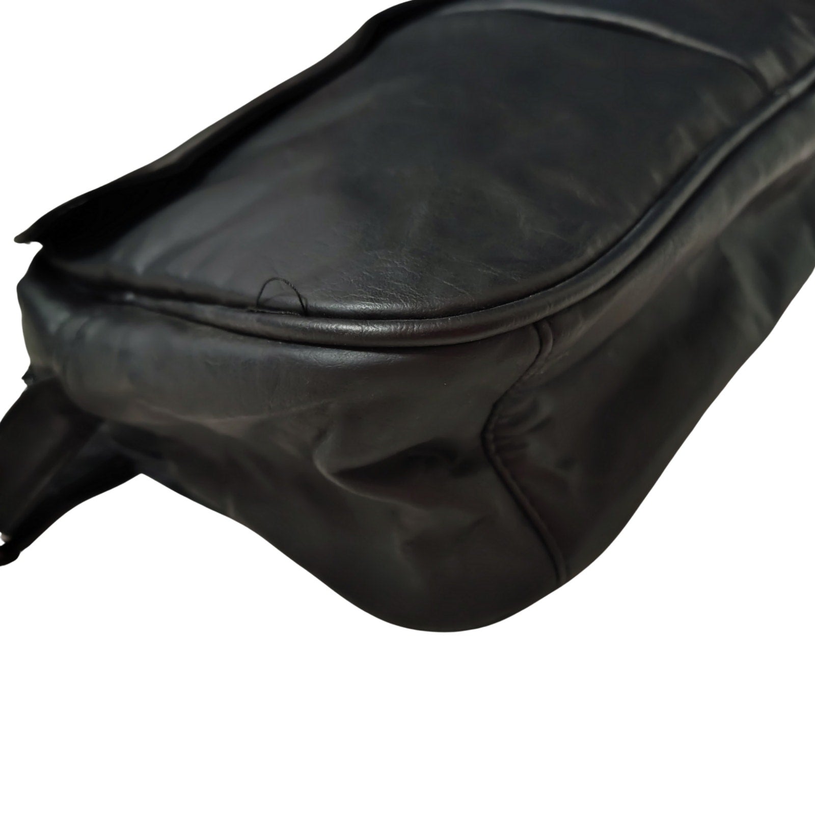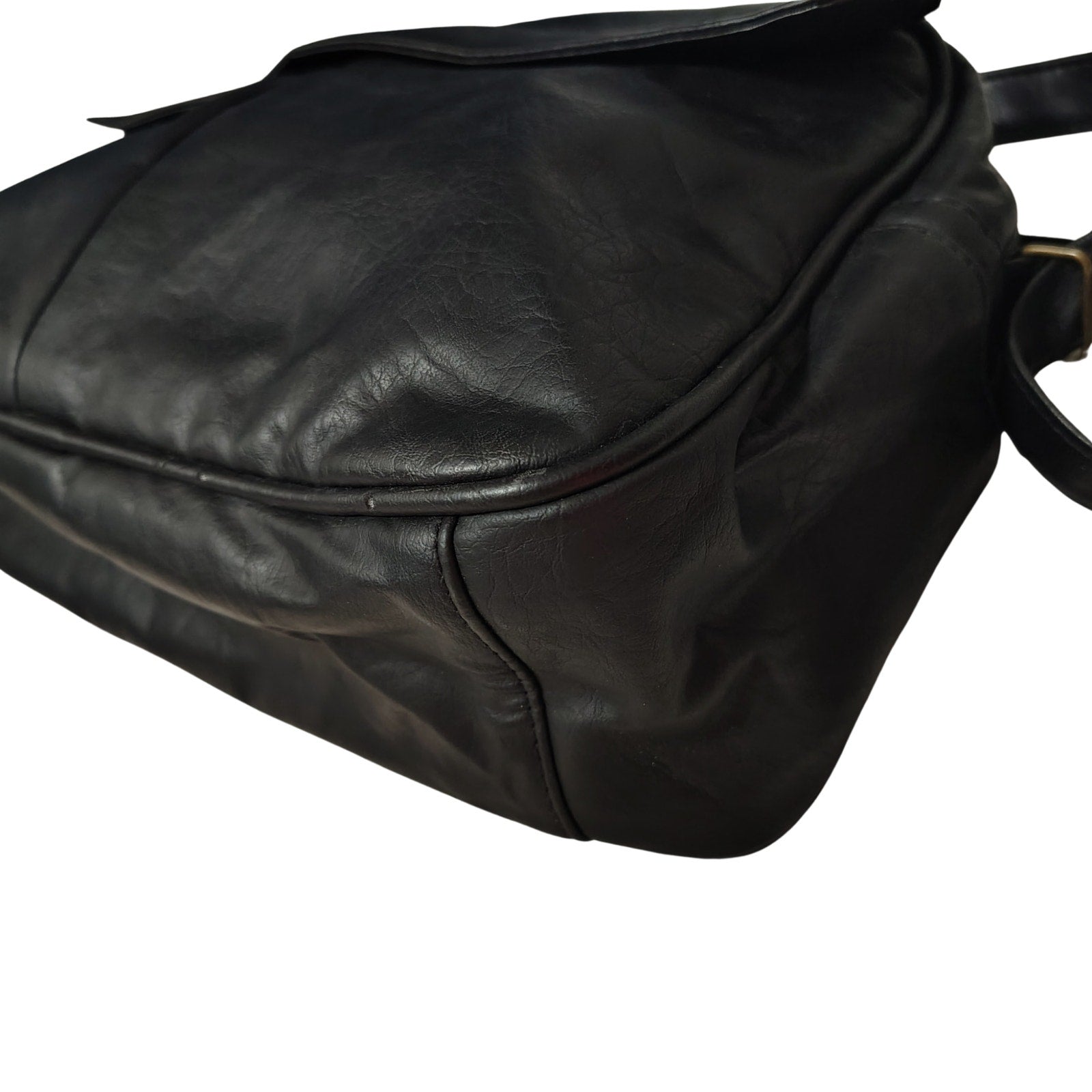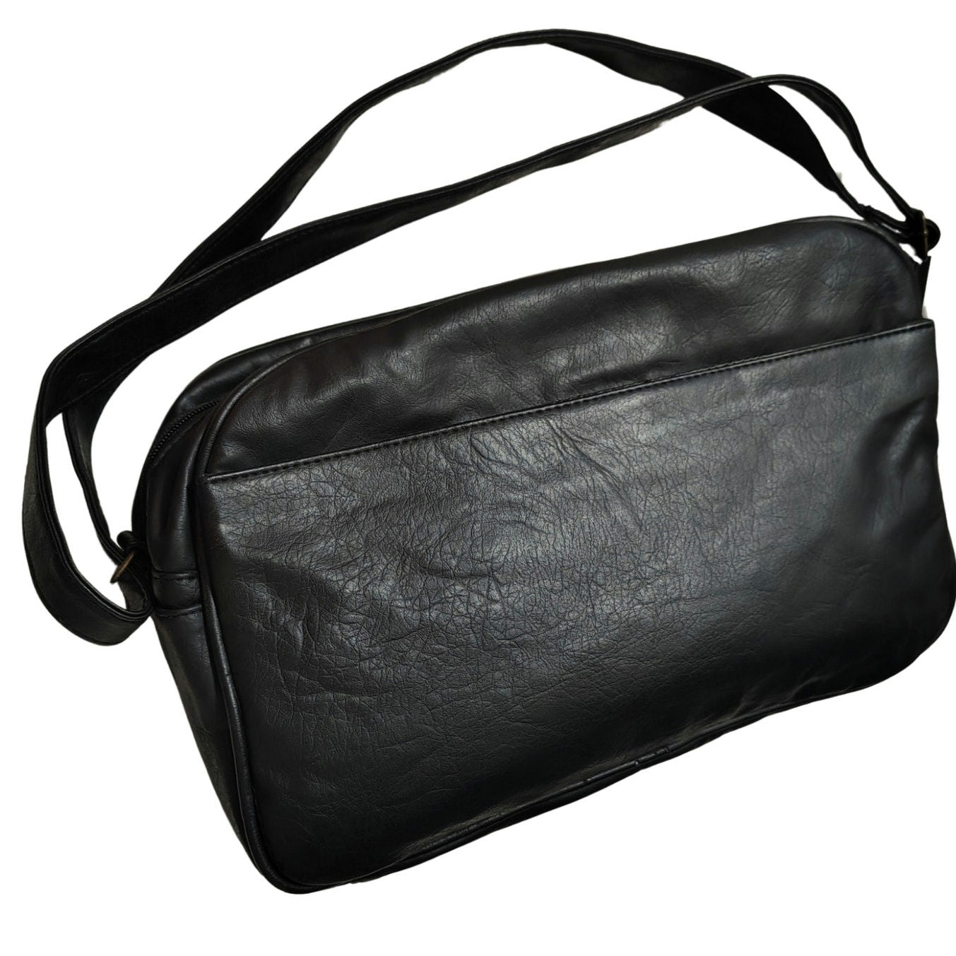 80s Black Faux Leather Crossbody Tote Medium Size Adjustable Hook Loop Closures