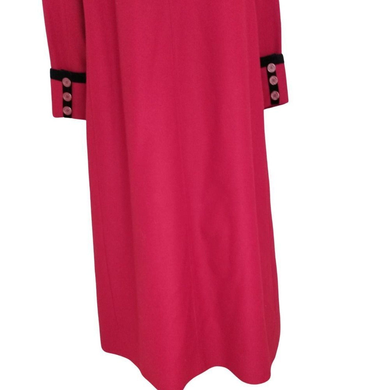 80s Long Red 100% Wool Coat Harve Benard Button Down Trench Size 12 New