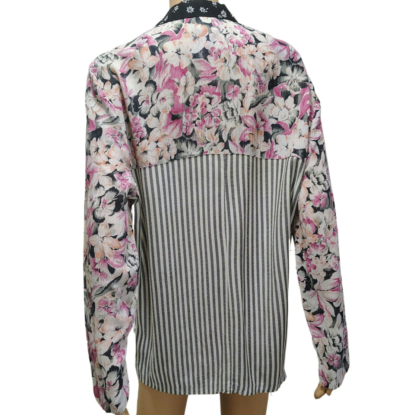 90s Patchwork Floral Striped Light Weight Box Cut Blazer Fold Down Collar Size Small