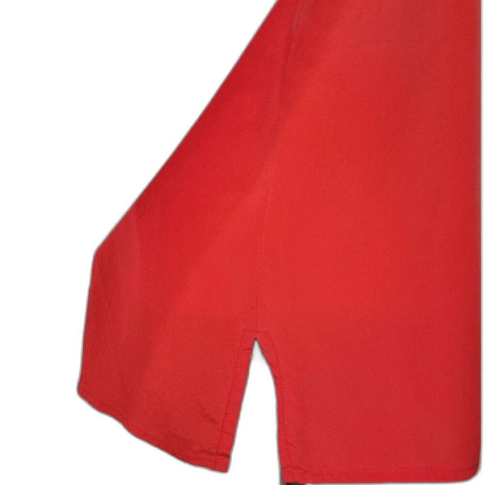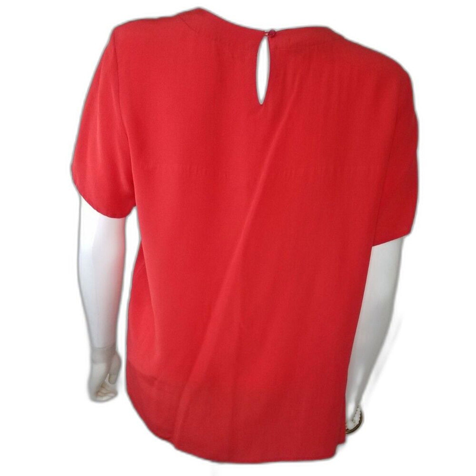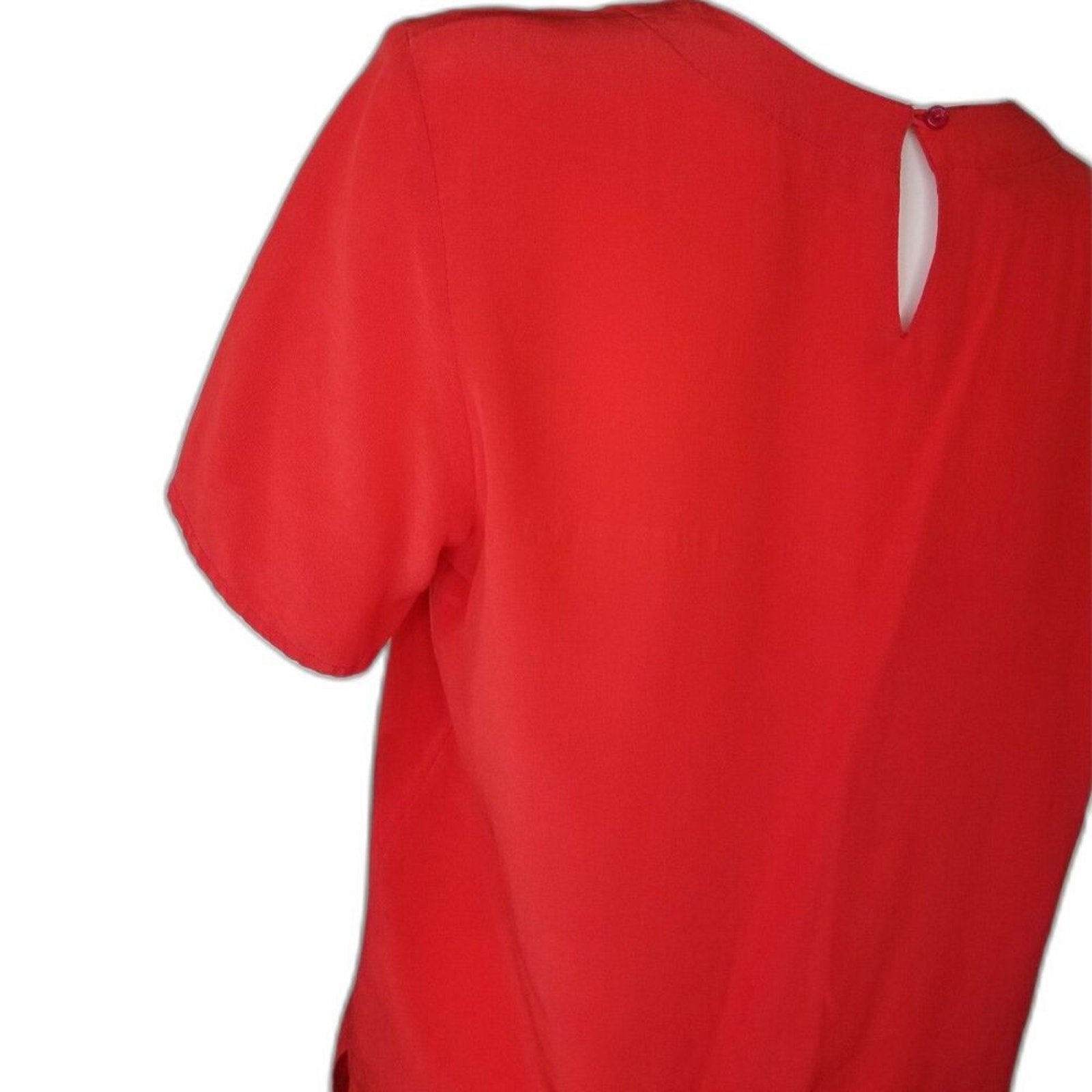 90s Vintage Spenser Jeremy Petites red 100% silk blouse. Short sleeves with a button on back and a key hole at top of back of neck. Box cut style with splits on both sides.
