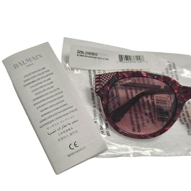 Balmain Paris burgundy cat eye frames Women's sunglasses. New In Packaging Case Included
