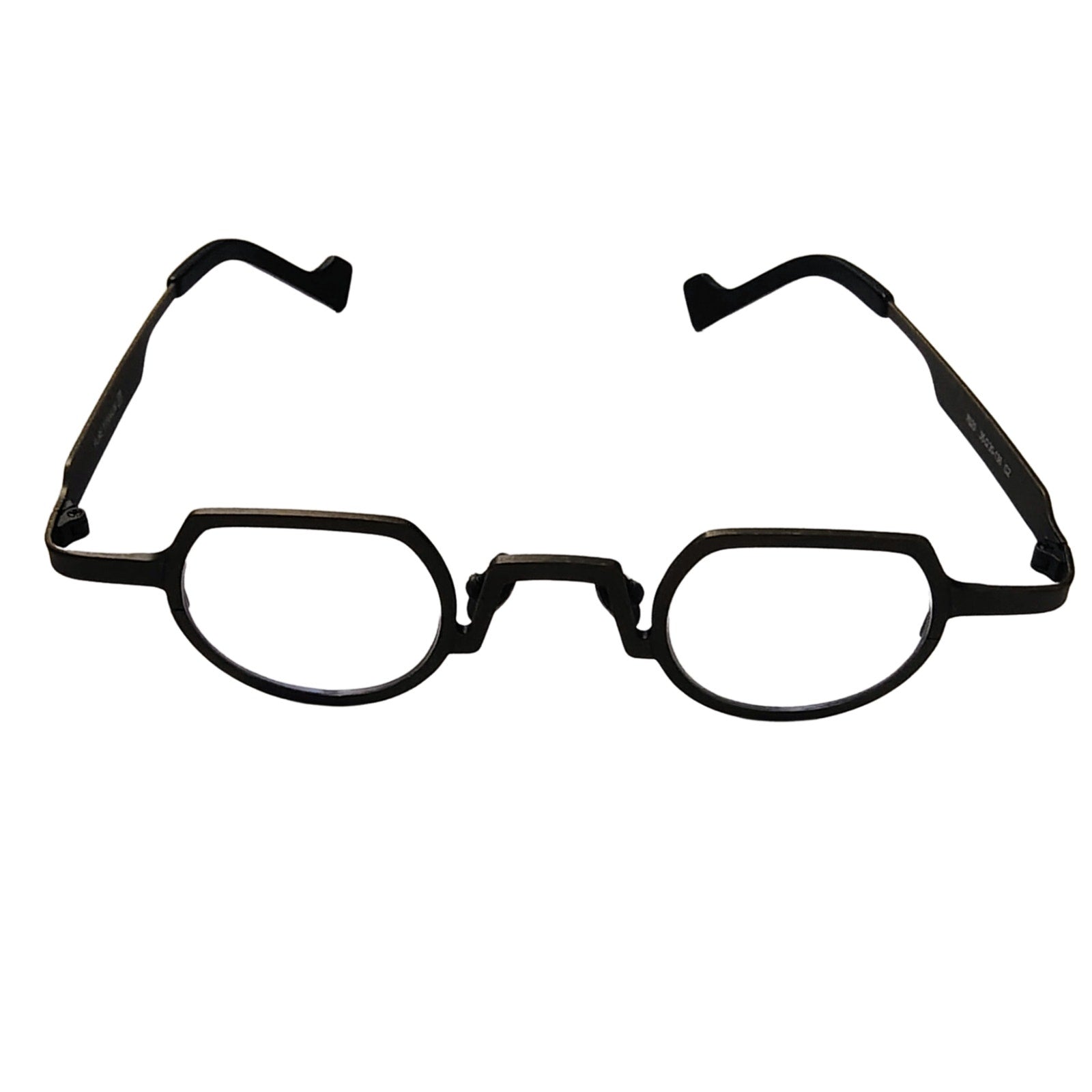 Bradford Lightweight Shield Shaped Titanium Eyeglasses Unisex Glasses Retro Design. All pieces are made of pure titanium including the nose pads. Not sure what the prescription is except that they are stronger than "readers" strength.