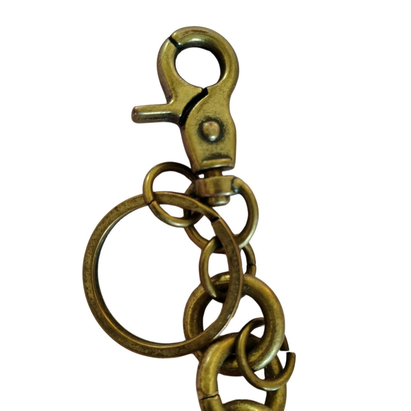 Brass 3D Puffy Hearts Purse Charm Key Ring Purse Accessory Plastic Metal Hook. Several rings linked together.. Two puffy hearts, one plastic one is carved metal. Secured with a hook closure.