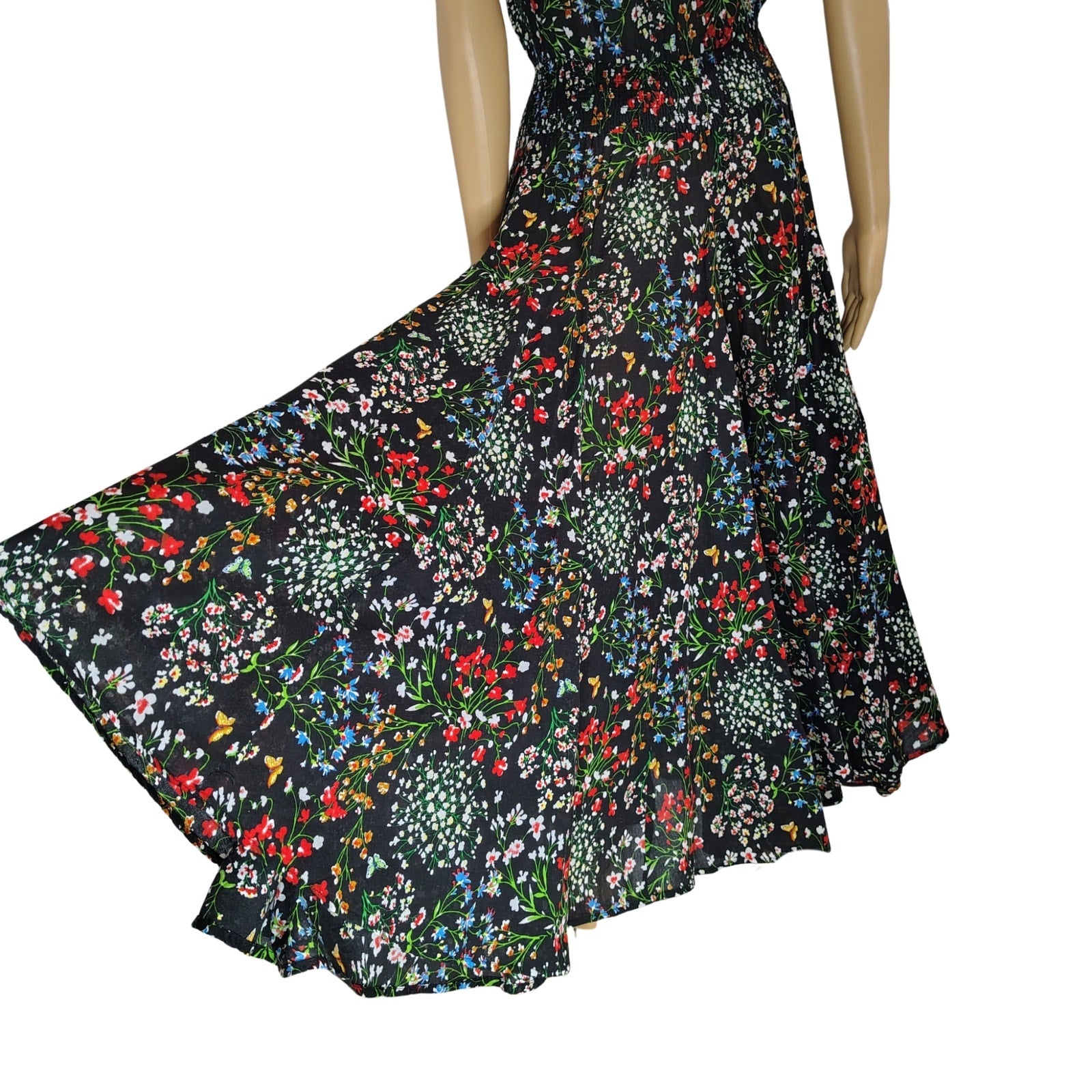 Chelsea & Theodore Floral Peasant Fit Flare Maxi Sundress Smocked Waist Size Medium