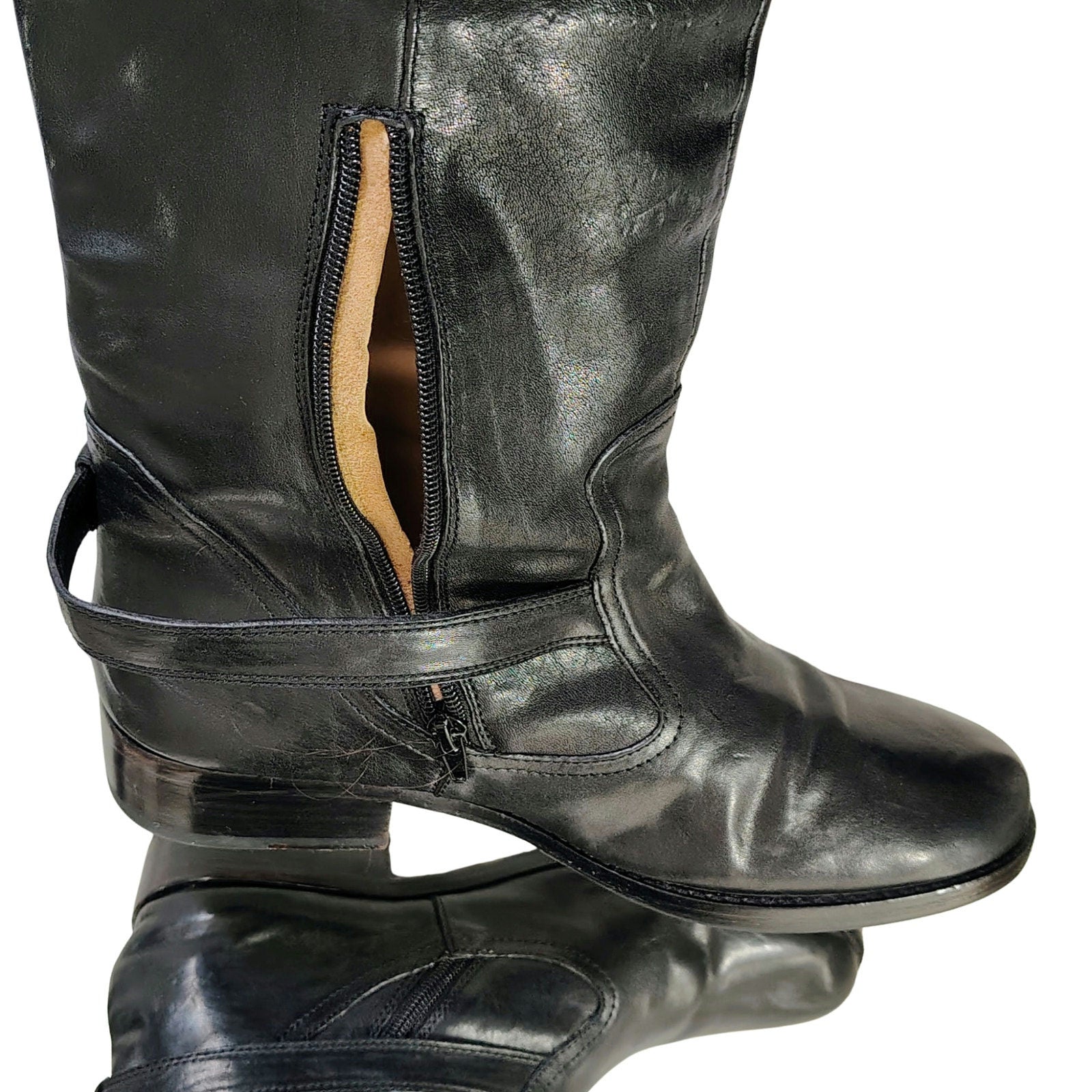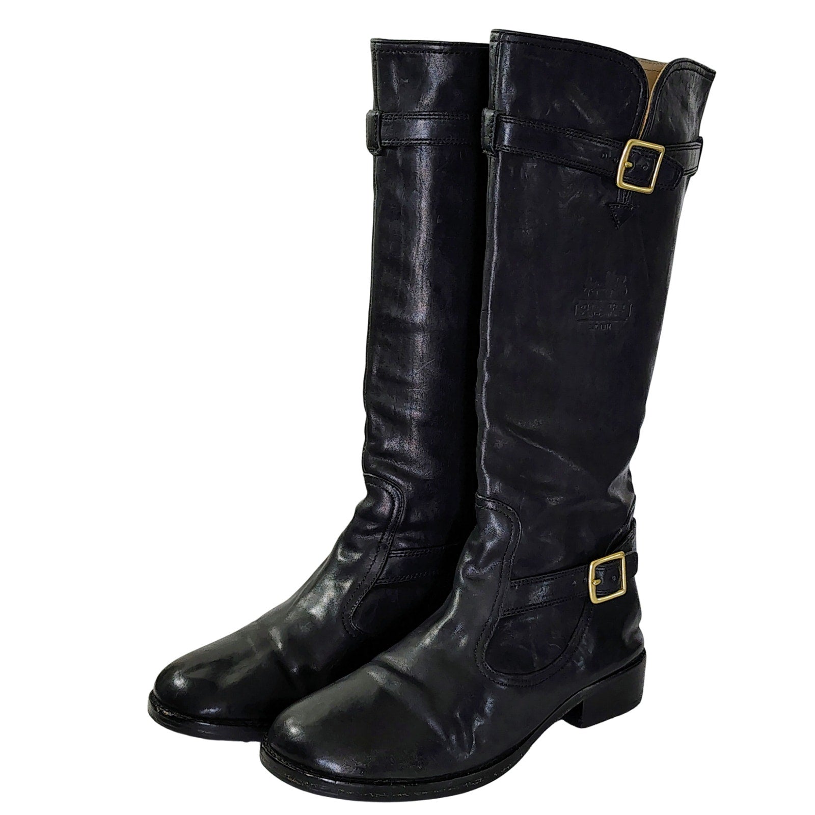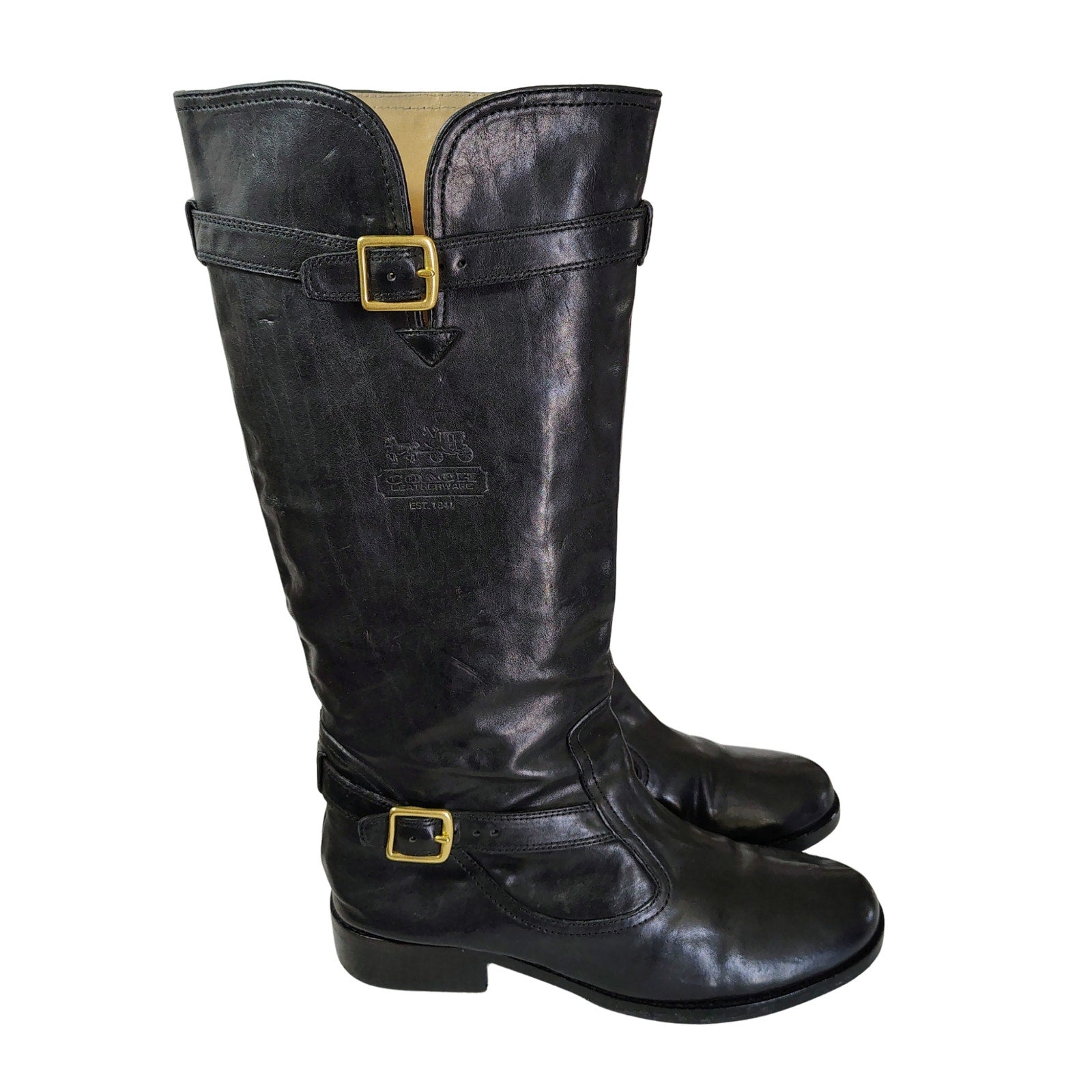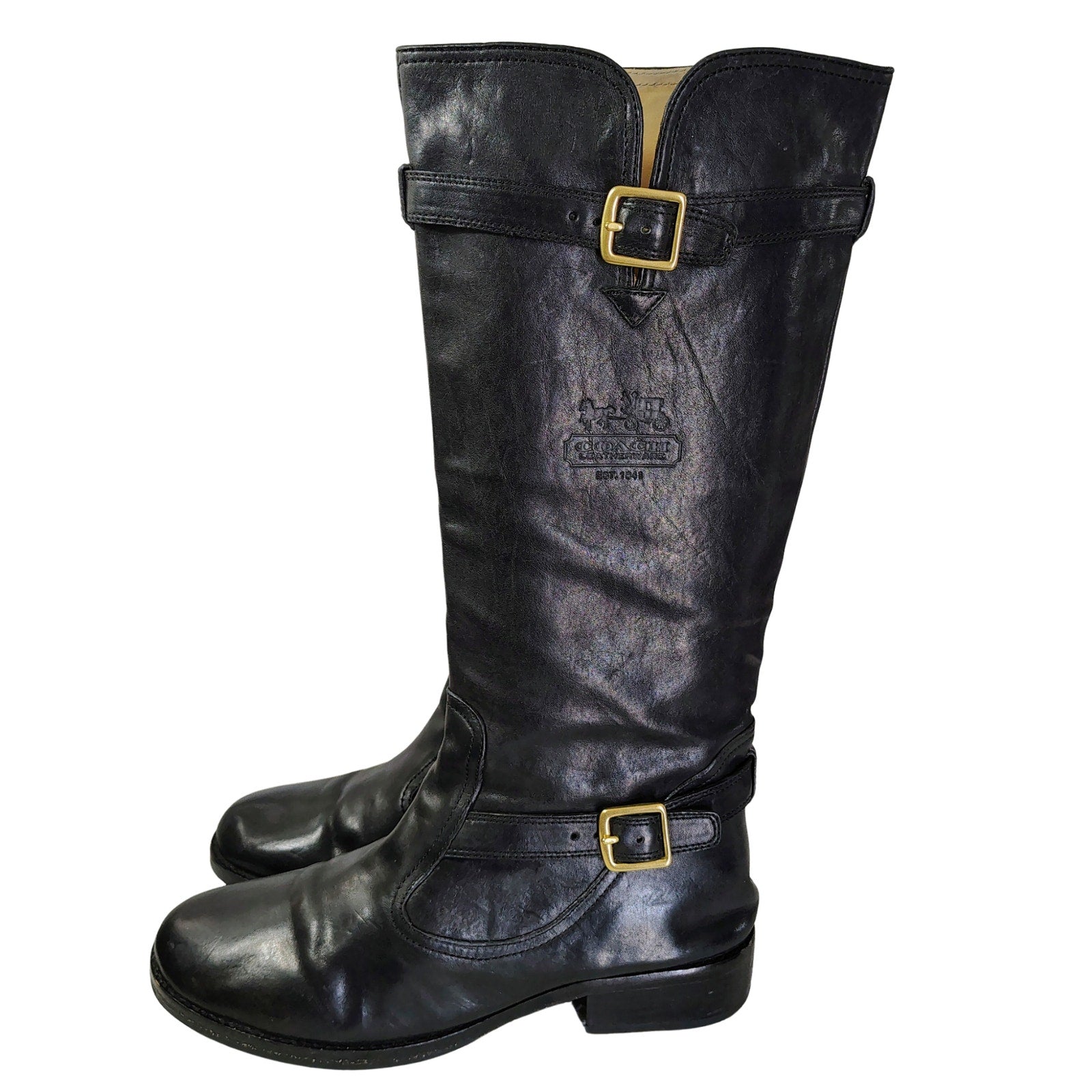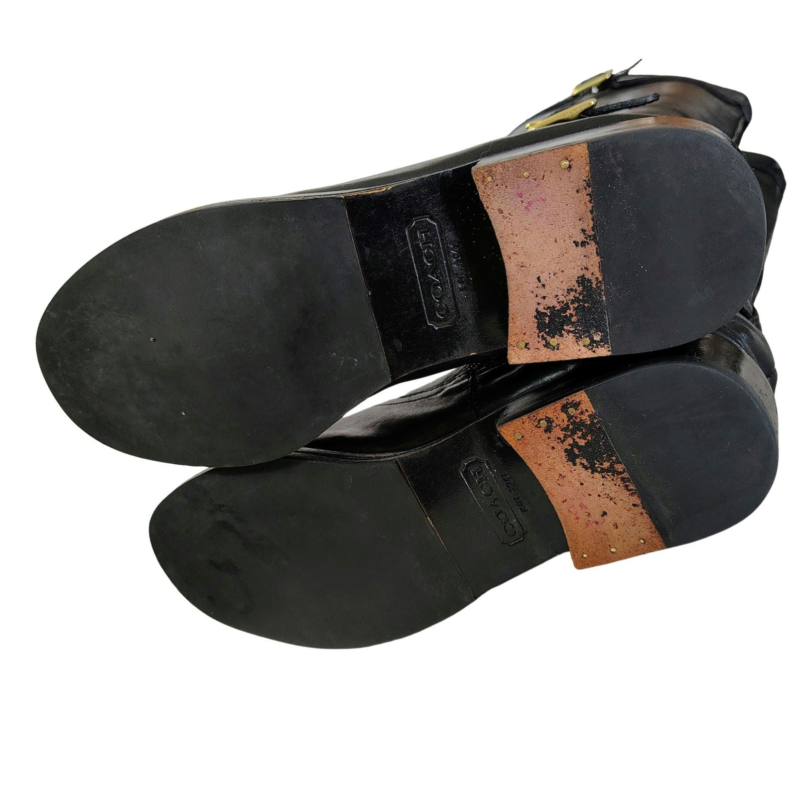 Coach Whitley Tall Black Leather Riding Boots Buckles Inside Zipper Round Toe Size 10B