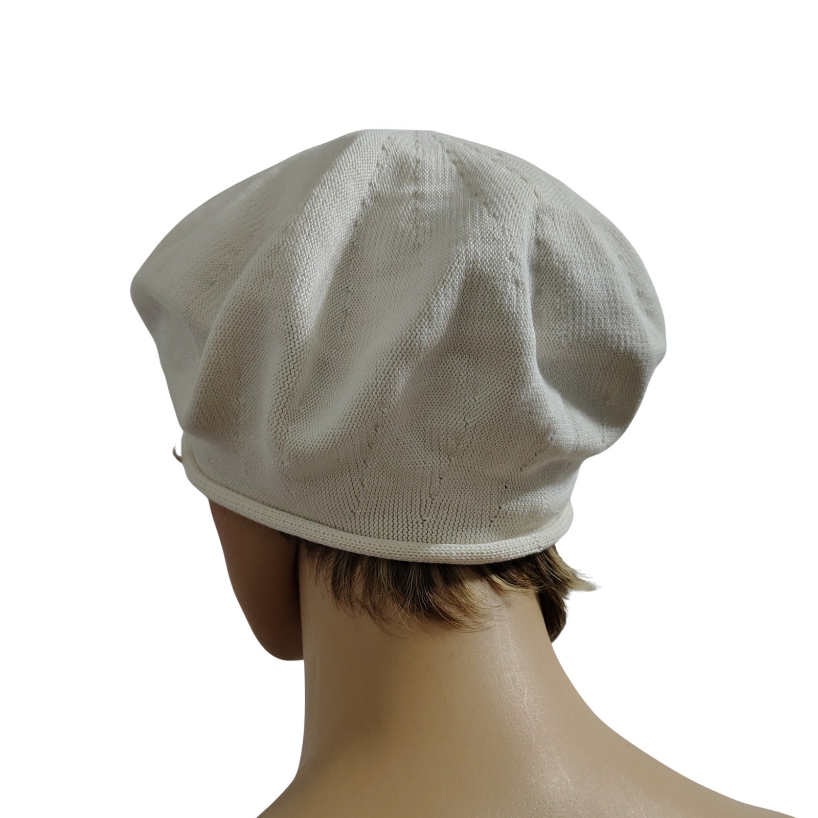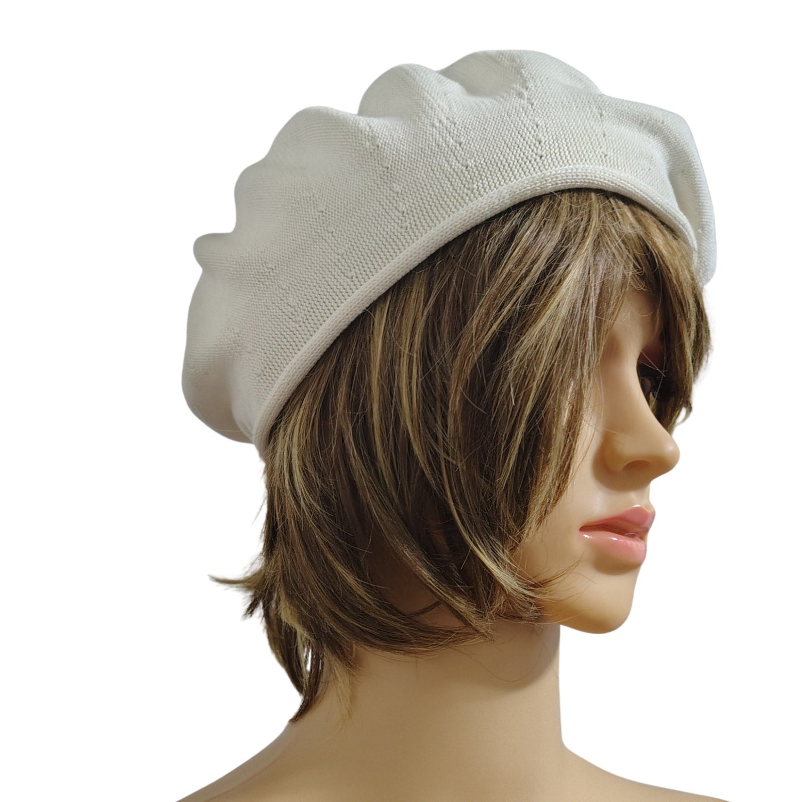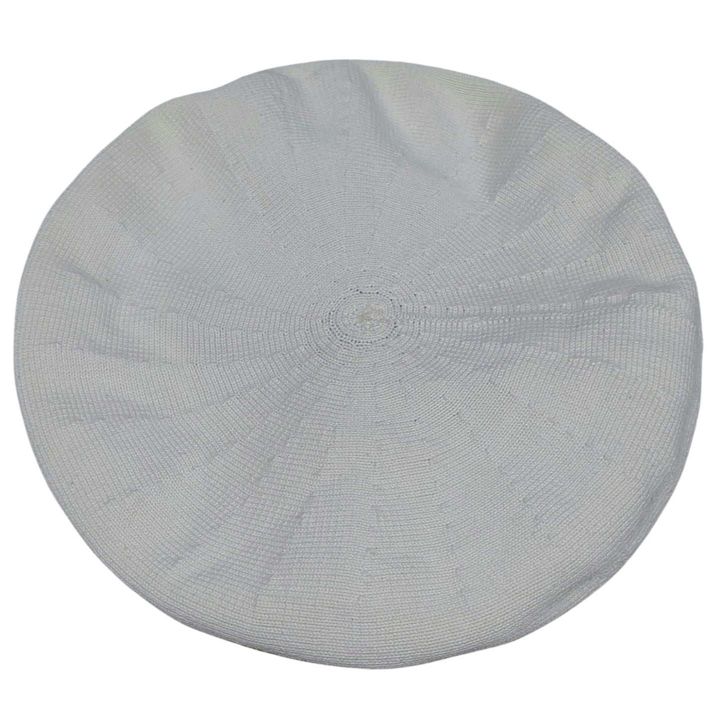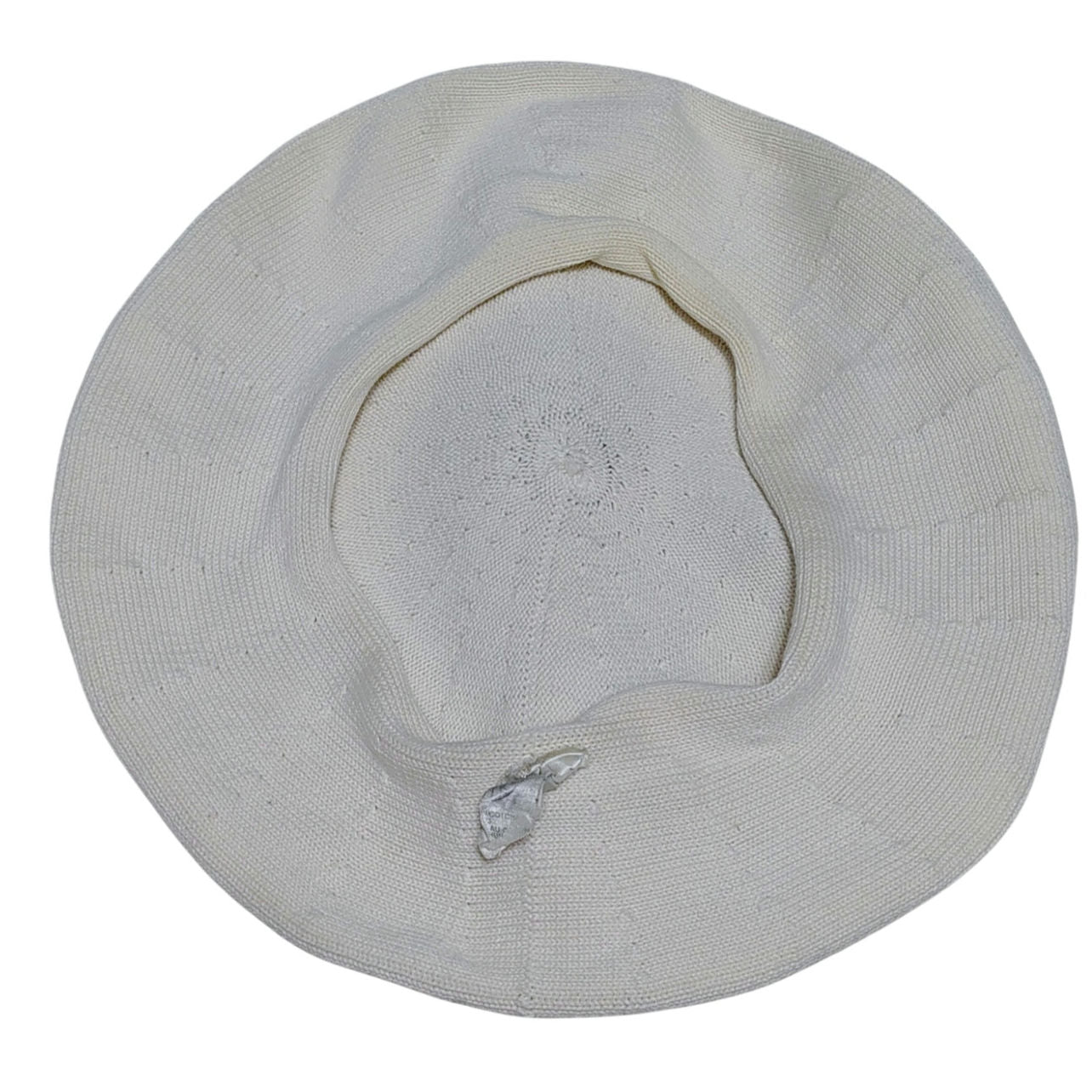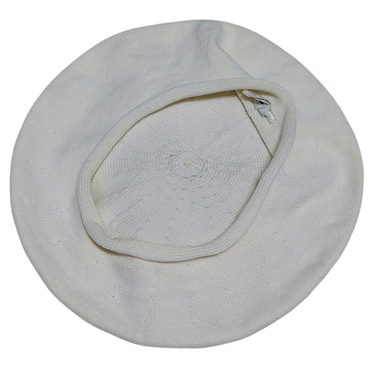 Cream Cotton Beret. (As seen in Pink on the Mary Poppins Returns movie). Knit with a sunburst on top of hat. Rolled extended edge.