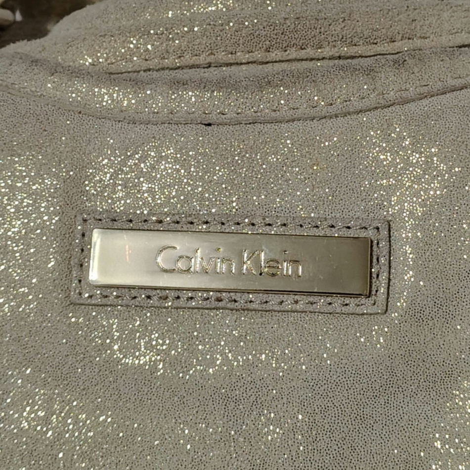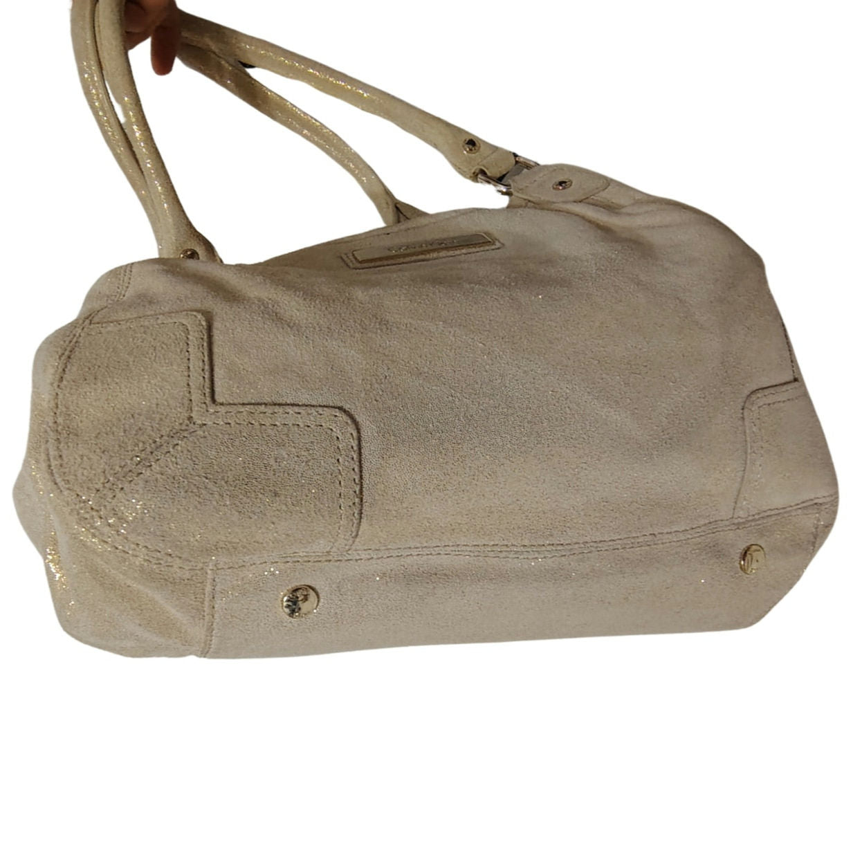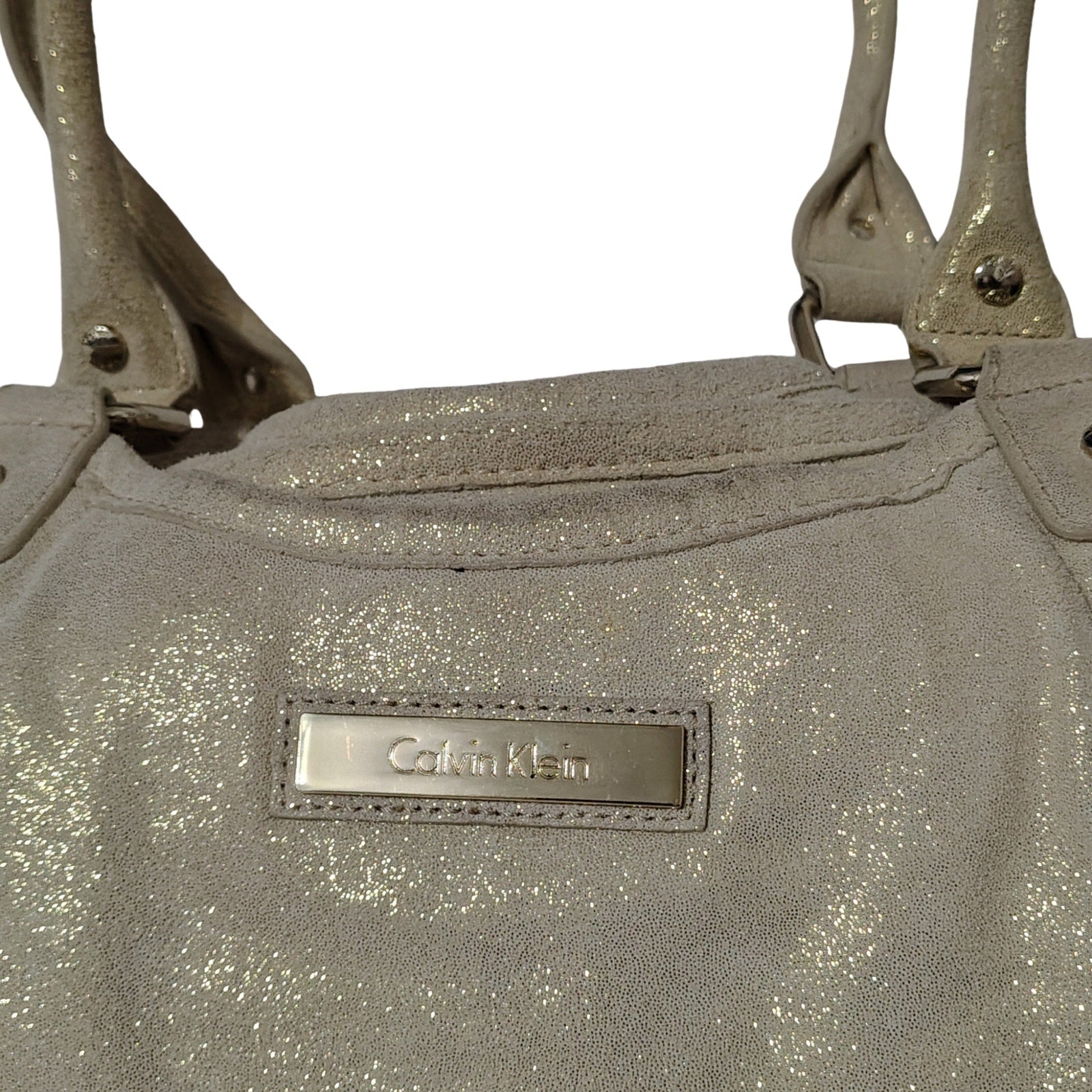 Cream Suede Gold Metallic Calvin Klein Shoulder Bag Double Handle 3 Compartments