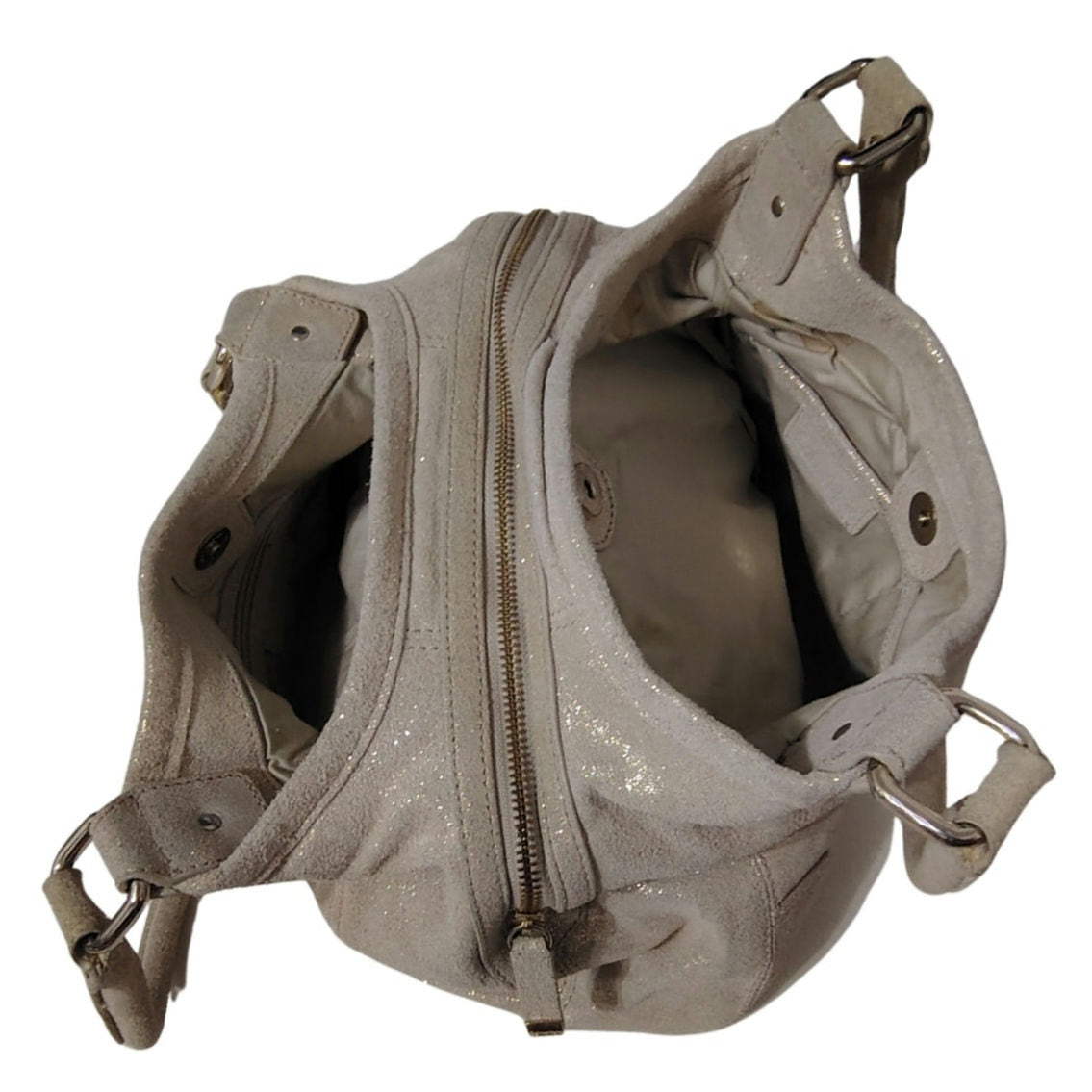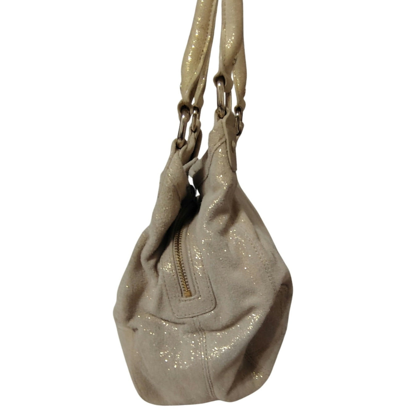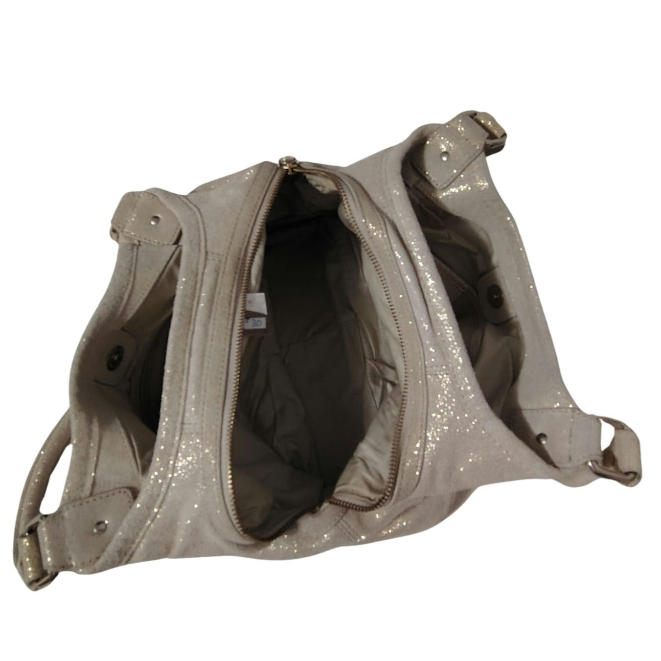 Cream Suede Gold Metallic Calvin Klein Shoulder Bag Double Handle 3 Compartments