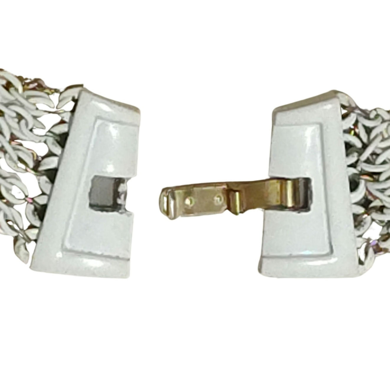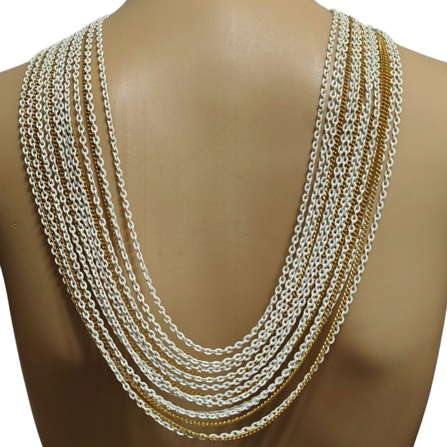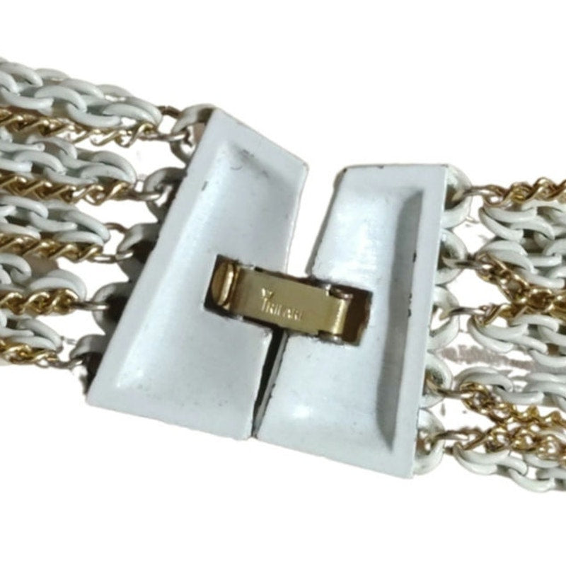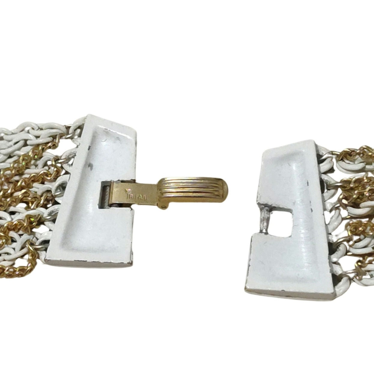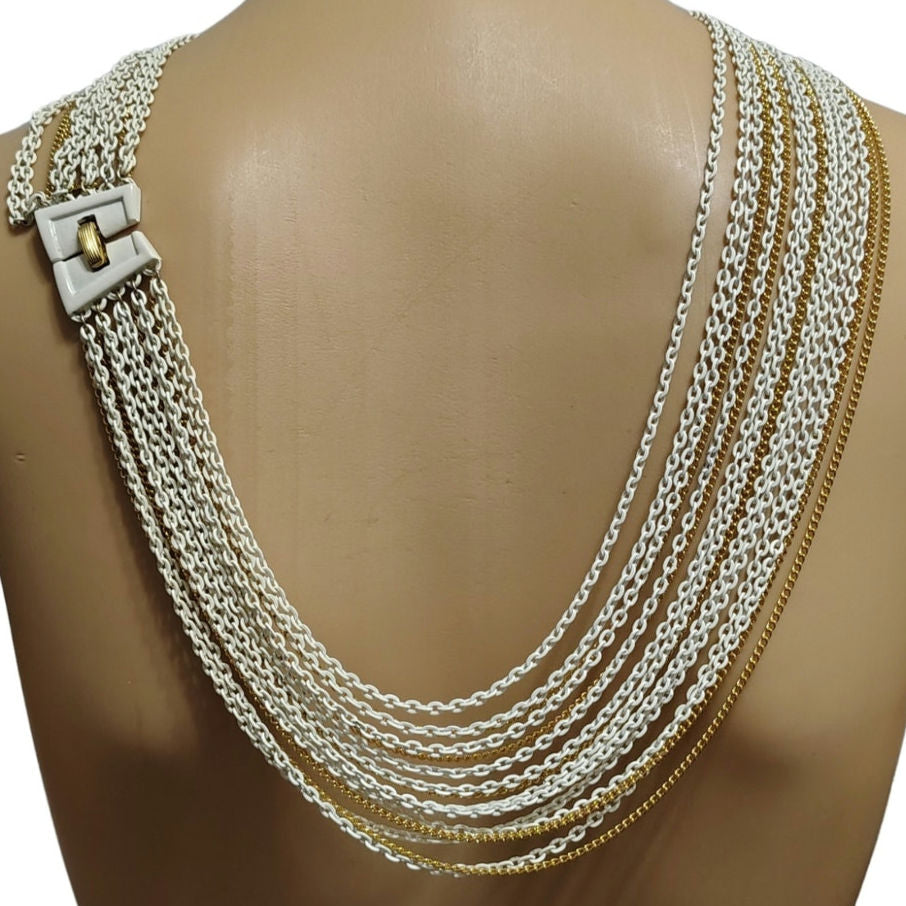 Crown Trifari 15 Strand Gold White Enamel Chain Multi Strand Necklace Foldover Clasp
