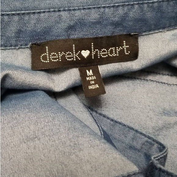 DEREK HEART Blue Jean Long Sleeve Tiered Button Down Shirt / Shacket Size Medium