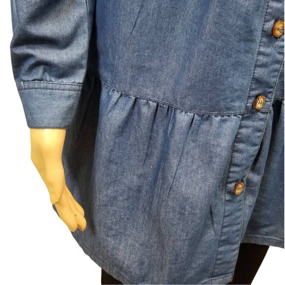 Derek Heart Blue Jean Tiered Button Up Shirt Shacket Size Medium