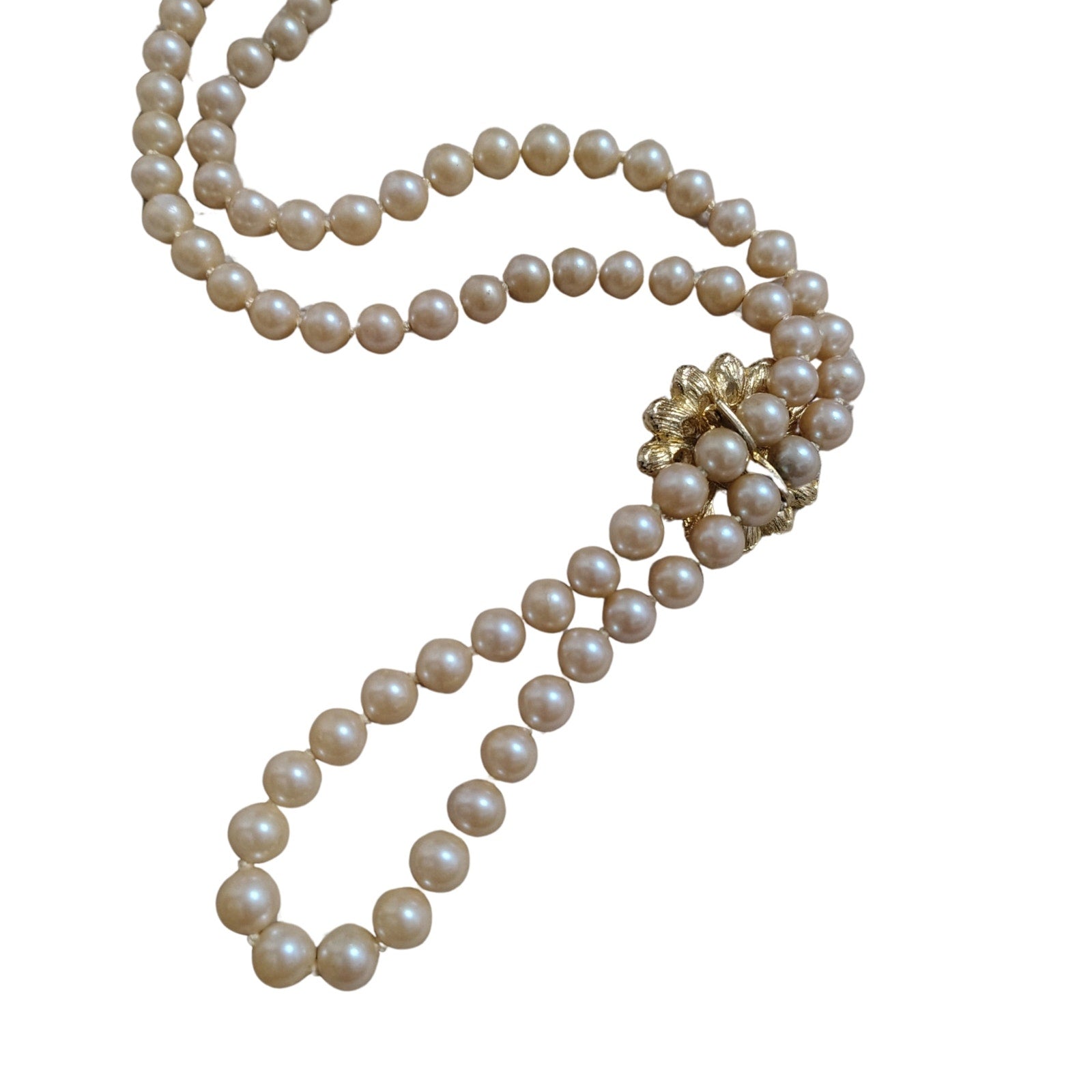Condition Great previously owned vintage with light wear on the back of the clip, necklace fastener and the two pearls behind the clasp.