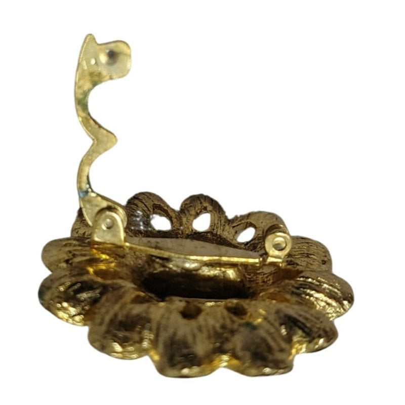 DuBarry Fifth Avenue Scarf Clip Round Flower Vintage Gold Tone 1.25" DFA 3D Floral Design Scarf Clasp Vintage Scarf Clip