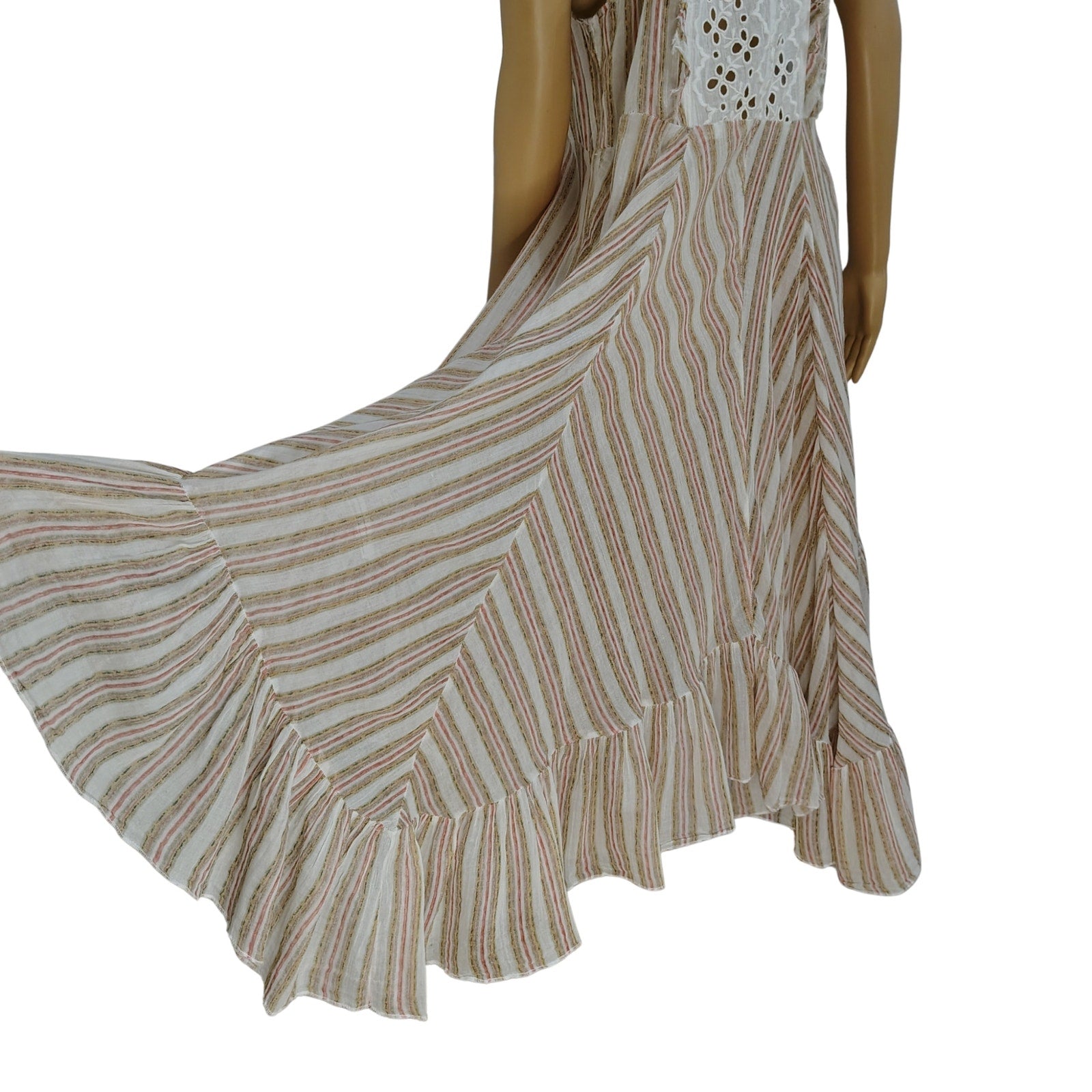 FP One Boho Brown White Flowy Caraway Stripe Sheer Uneven hem Long Dress Size Large