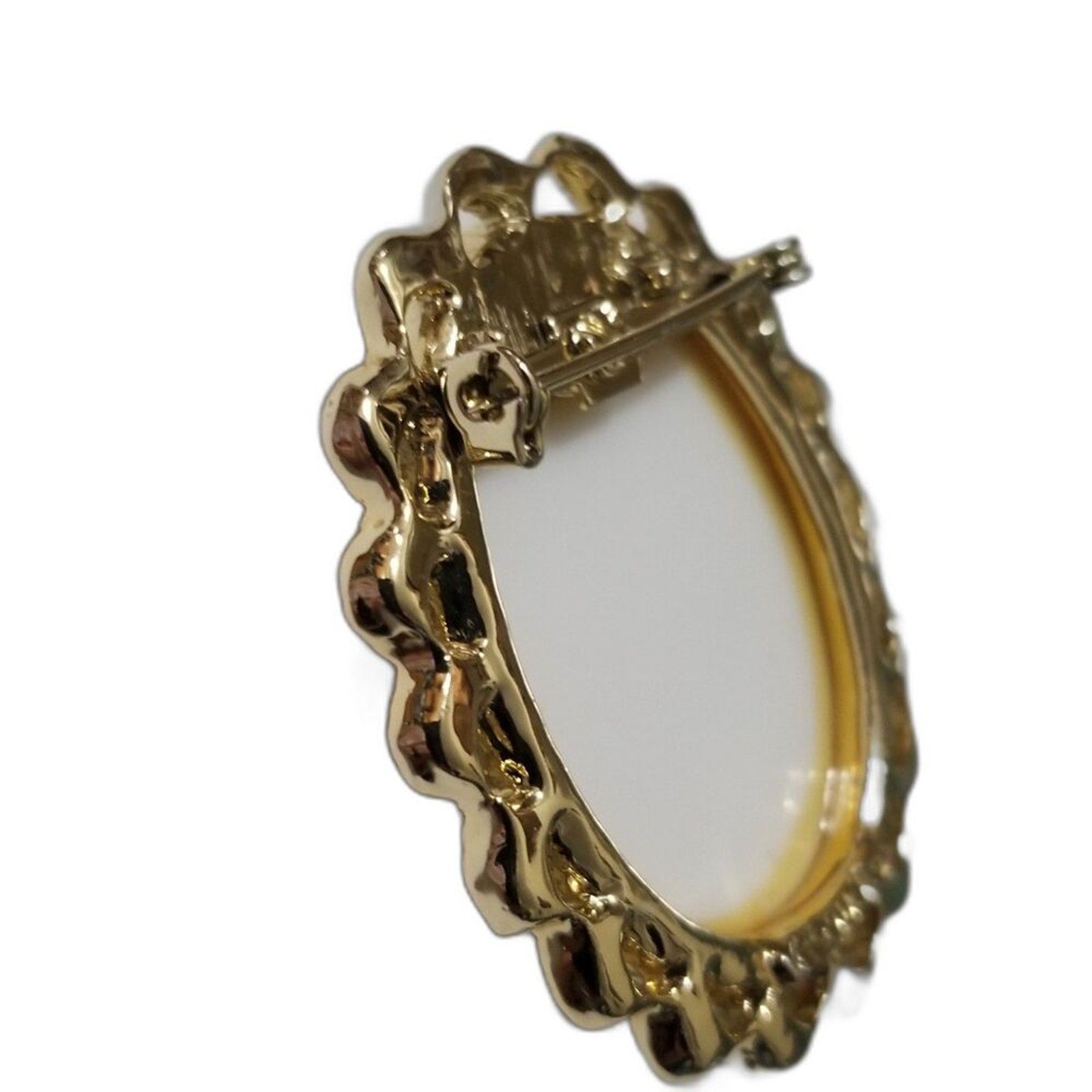 Victorian Design Oval Courting Lover Brooch Gold Scallop Frame by Fragonard [Vintage]