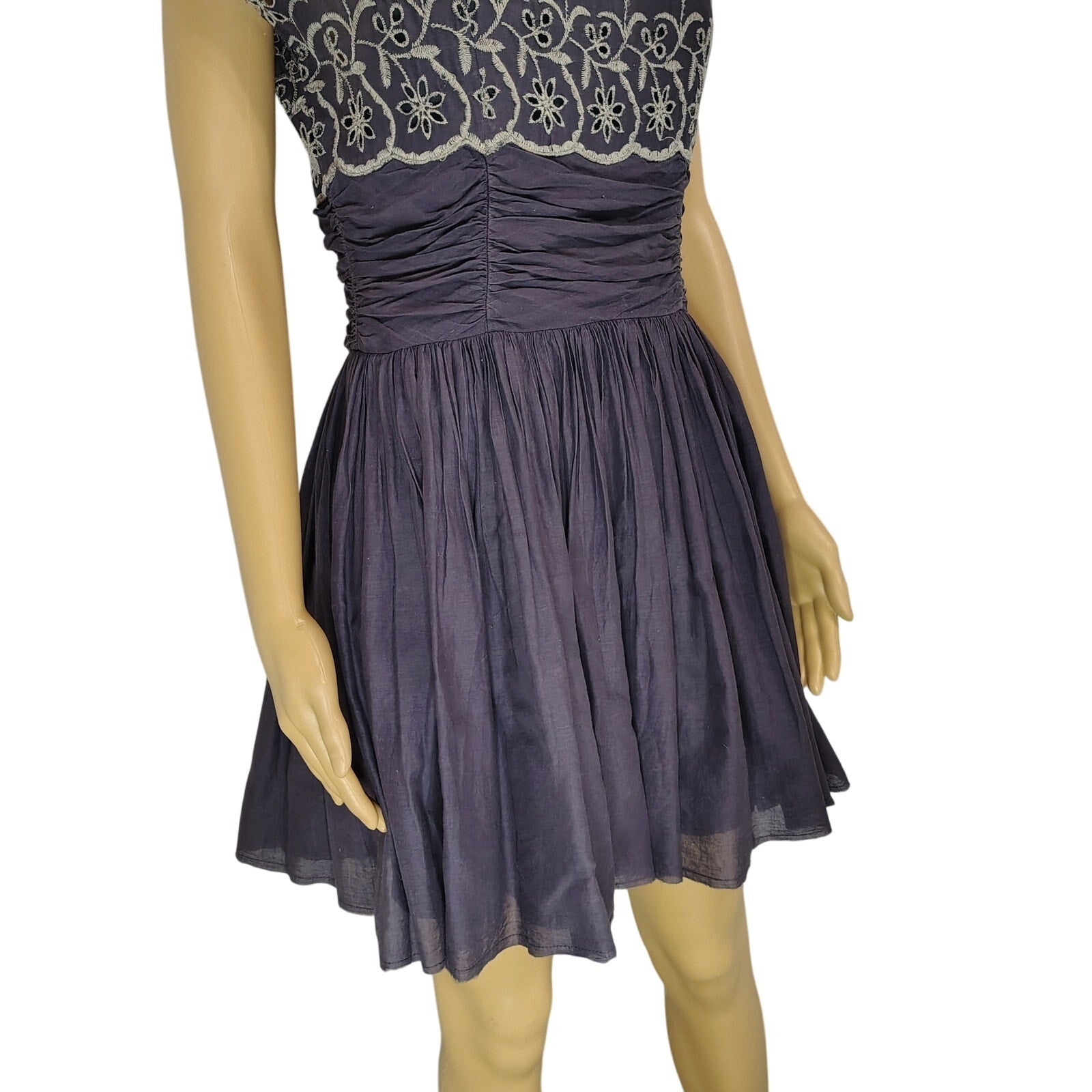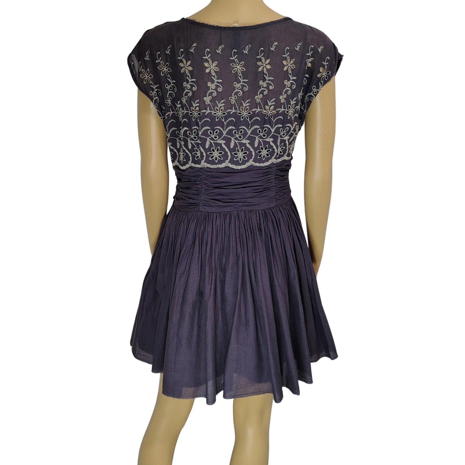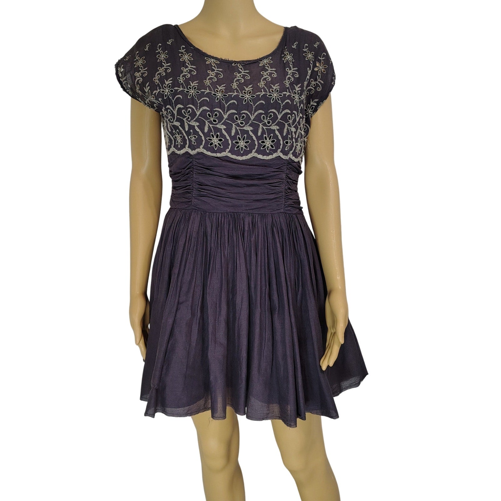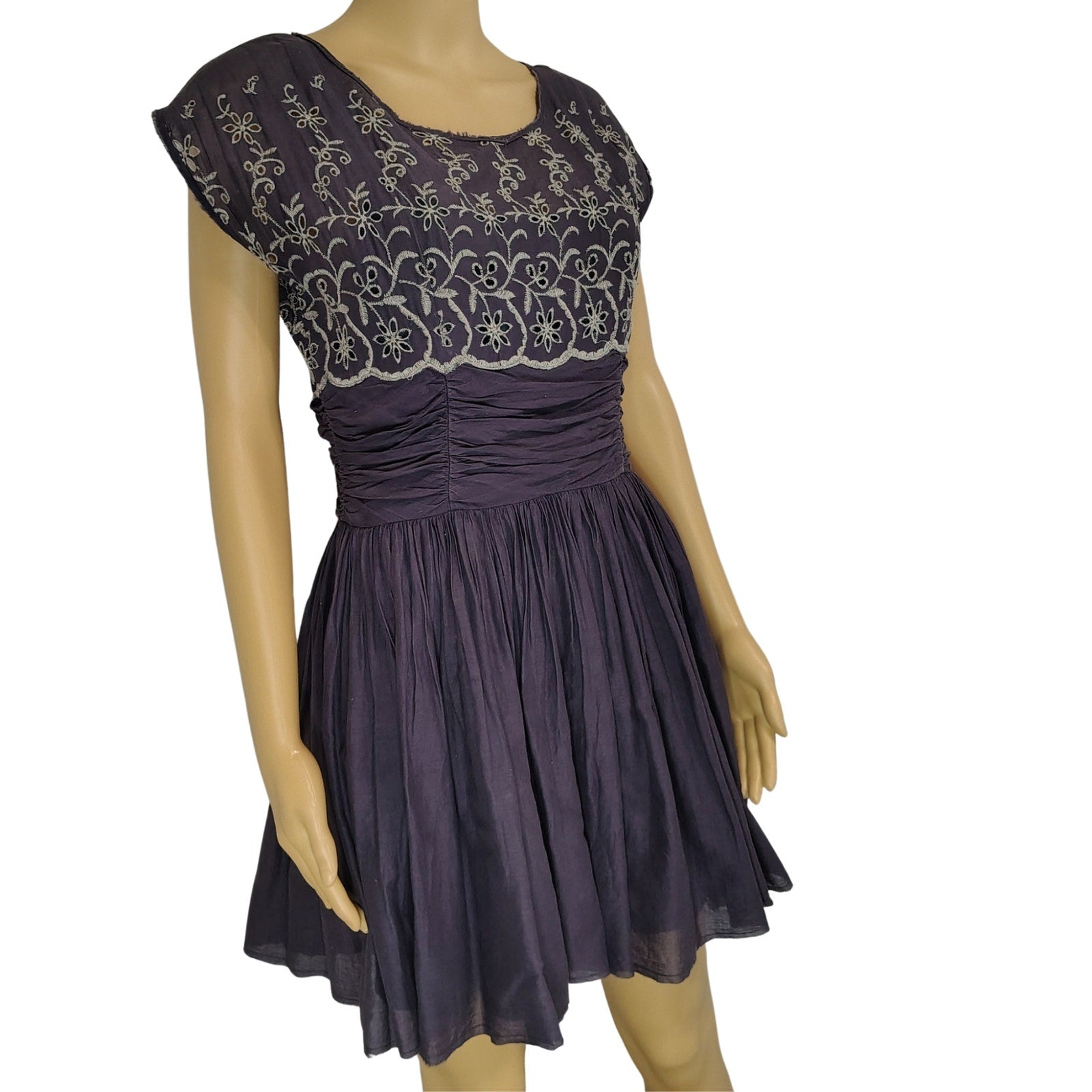 Free People Dark Purple Shirred Floral Embroidered Eyelet Dress Womens Size Small