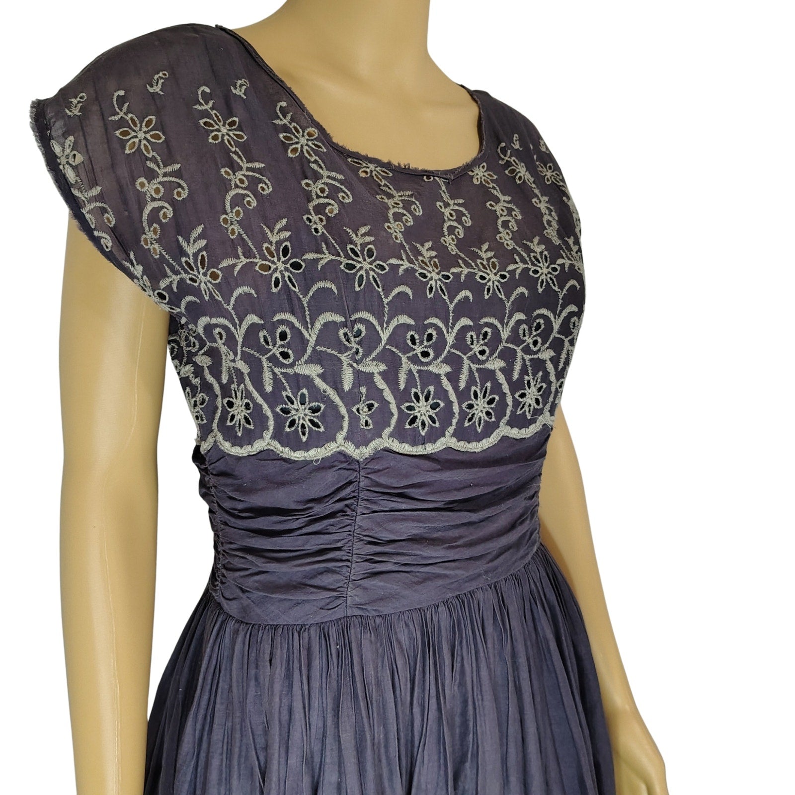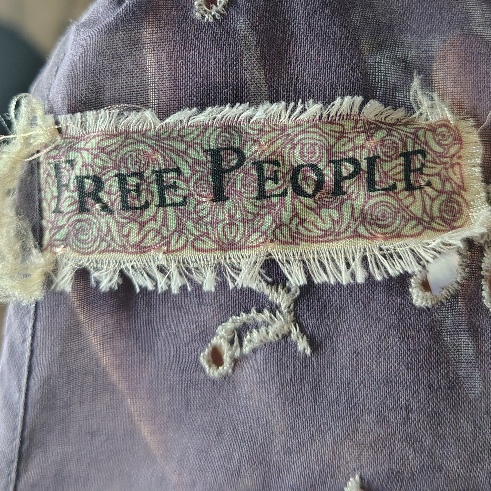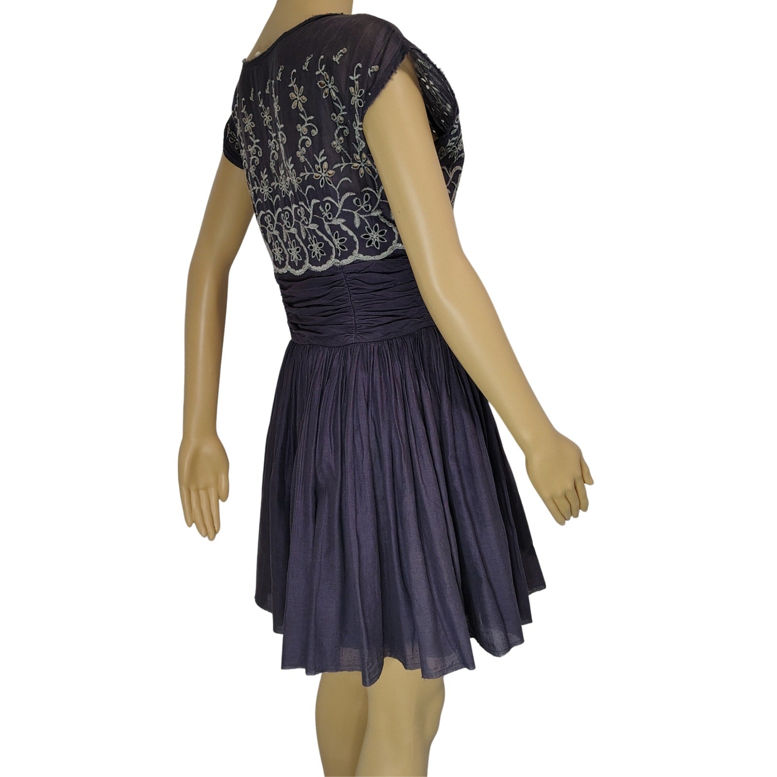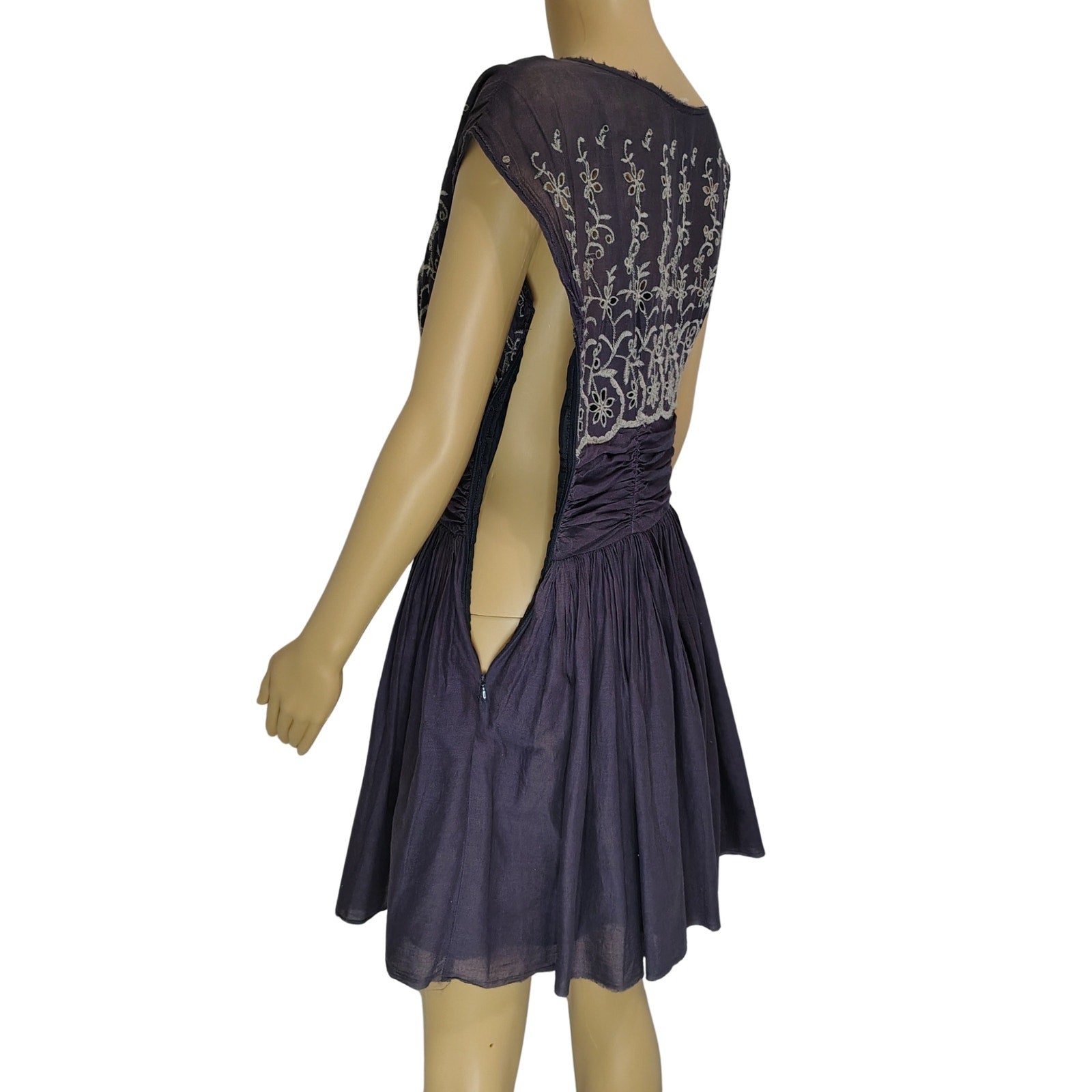 Free People Dark Purple Shirred Floral Embroidered Eyelet Dress Womens Size Small